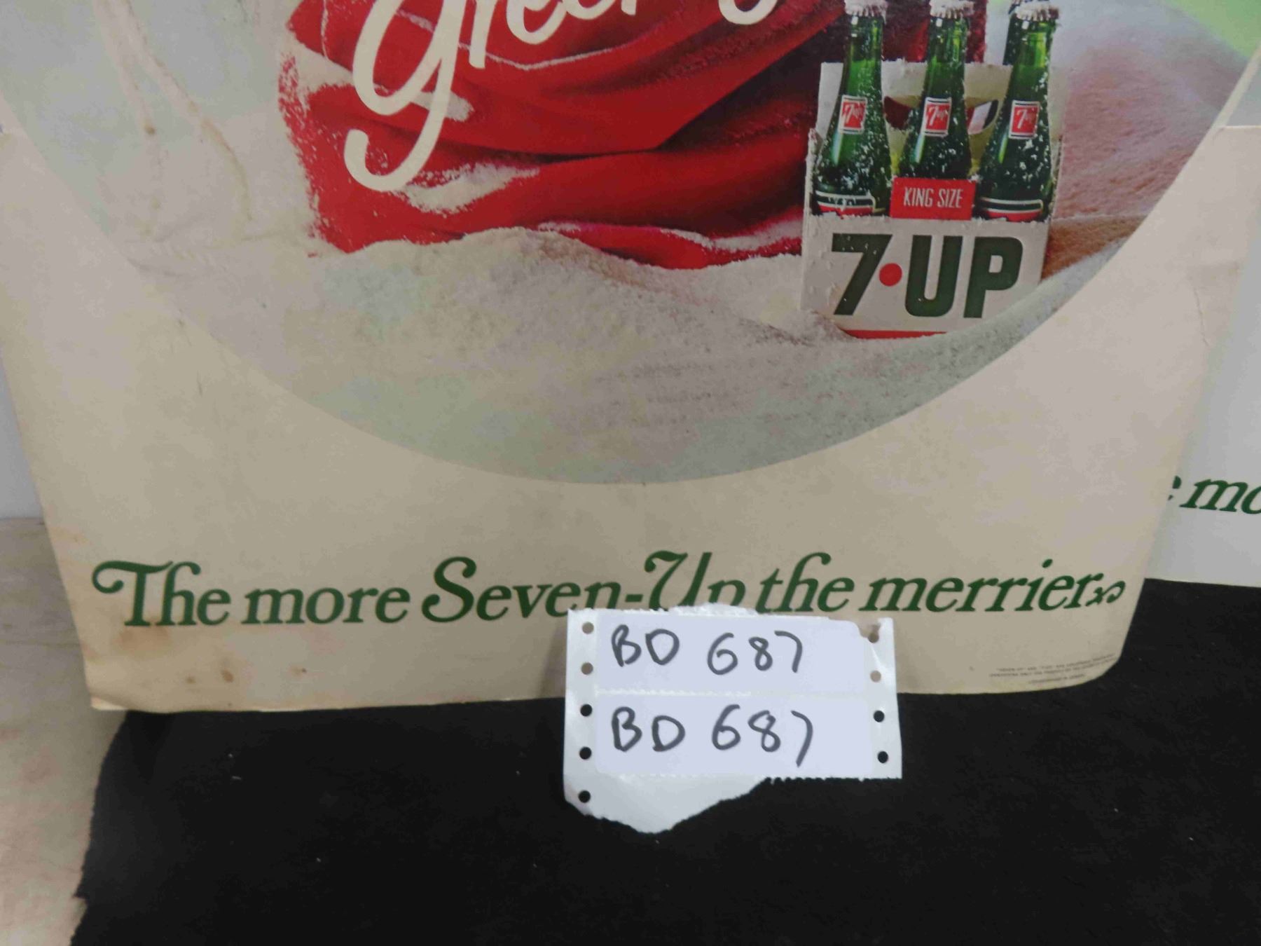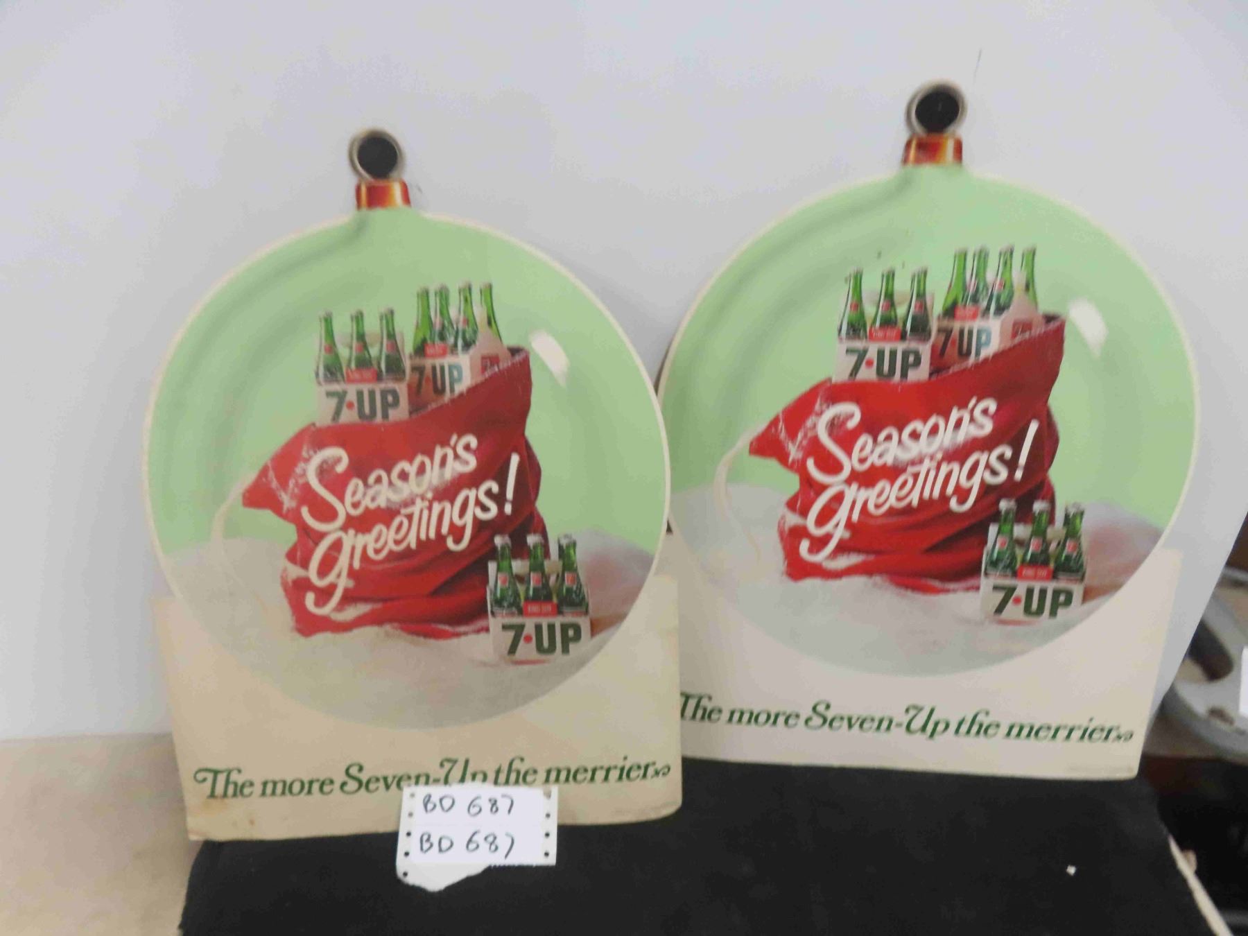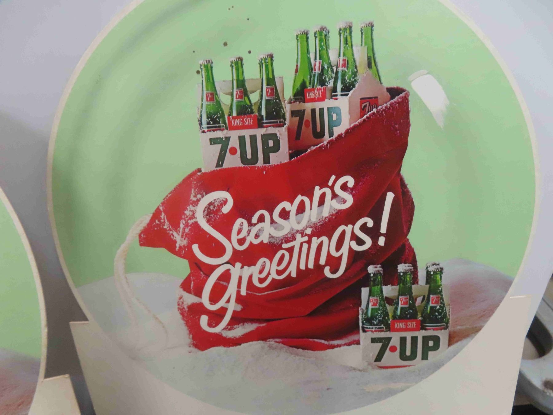 2 Vintage 7Up Advertising Cardboard Easel Back Signs - Christmas 14" x 19"