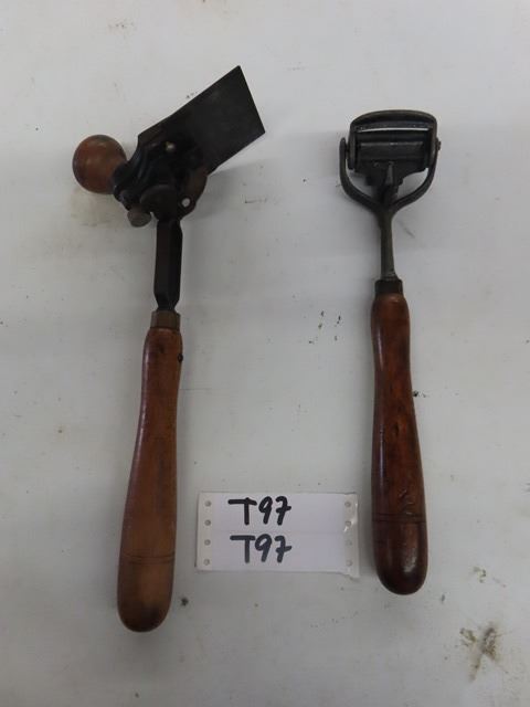 2 Vintage Antique scrapers: Largest 17” is a Stanley No. 82. U.S. Patent No. 1-29-07 + (2nd) is a swivel head box scraper plane, measuring just over 12” - appears to be unmarked. It is almost identical to a Stanley No. 70.