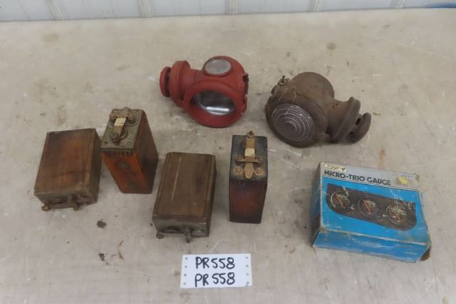 2 Vintage Auto Headlights, 4 Wooden Coils, Modern Gauge Package