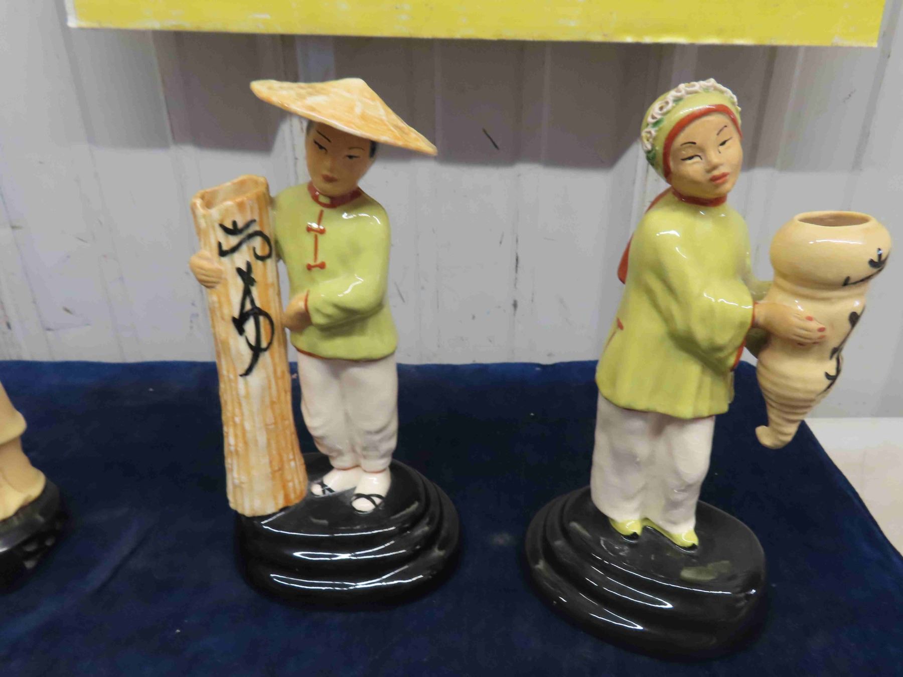2 Vintage California Chinese Figural Vases, 2 Ivorex Chinese Lady Figures, Porcelain