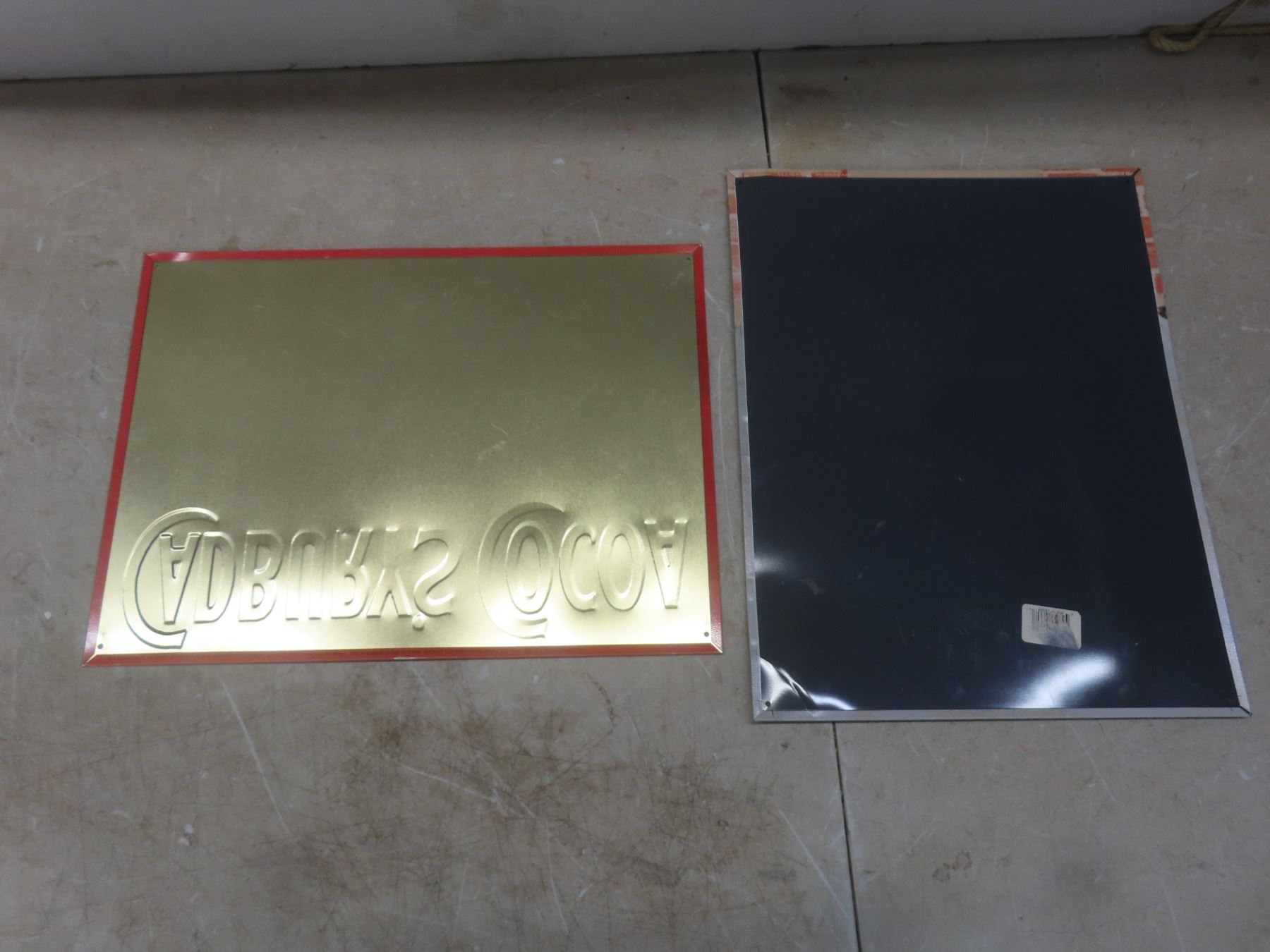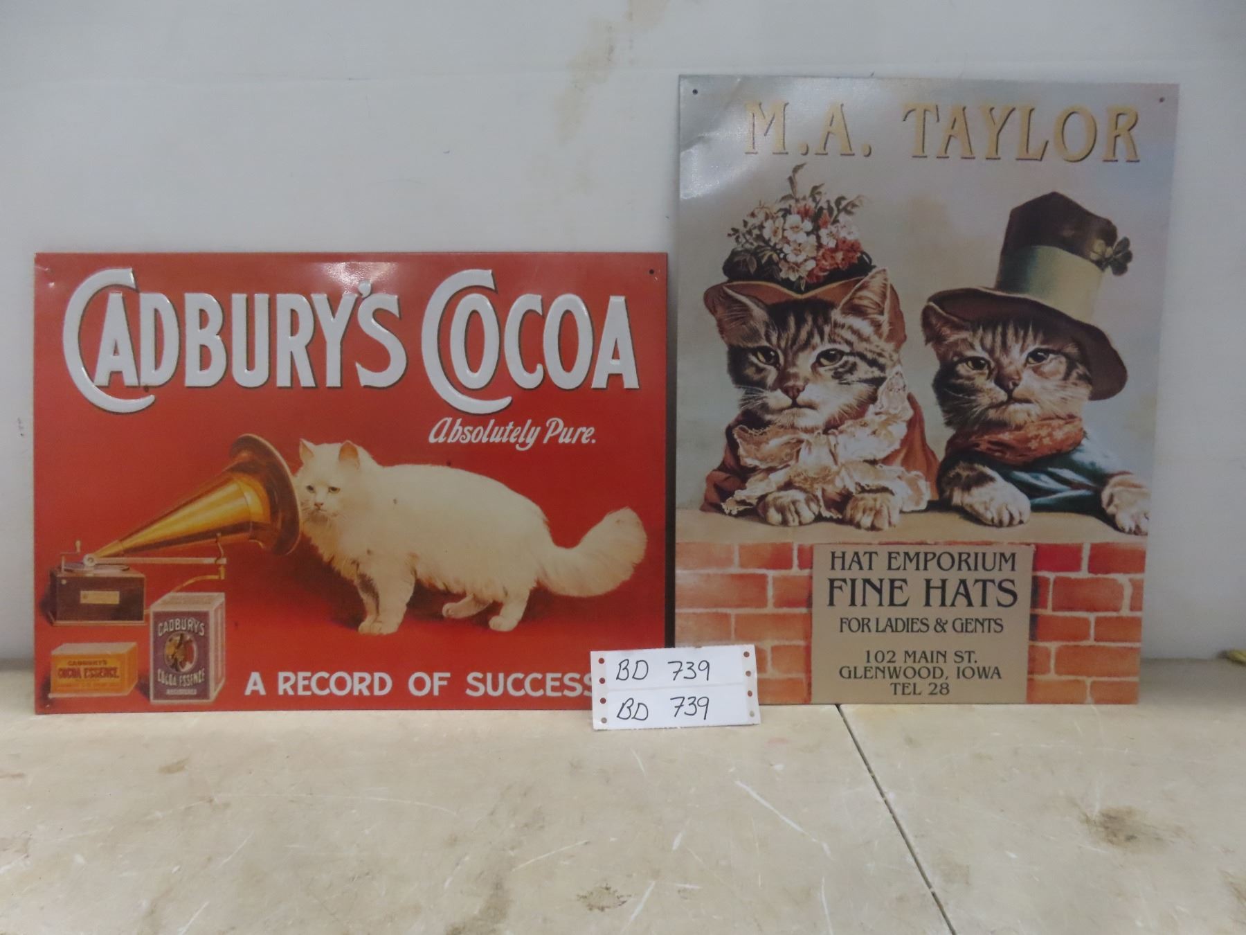2 Vintage Cat Advertising Metal Signs and Olive Oil Dispenser, Largest 16" X 12"