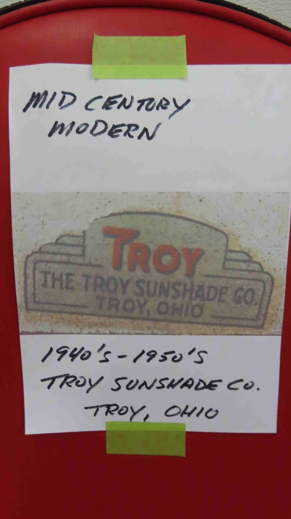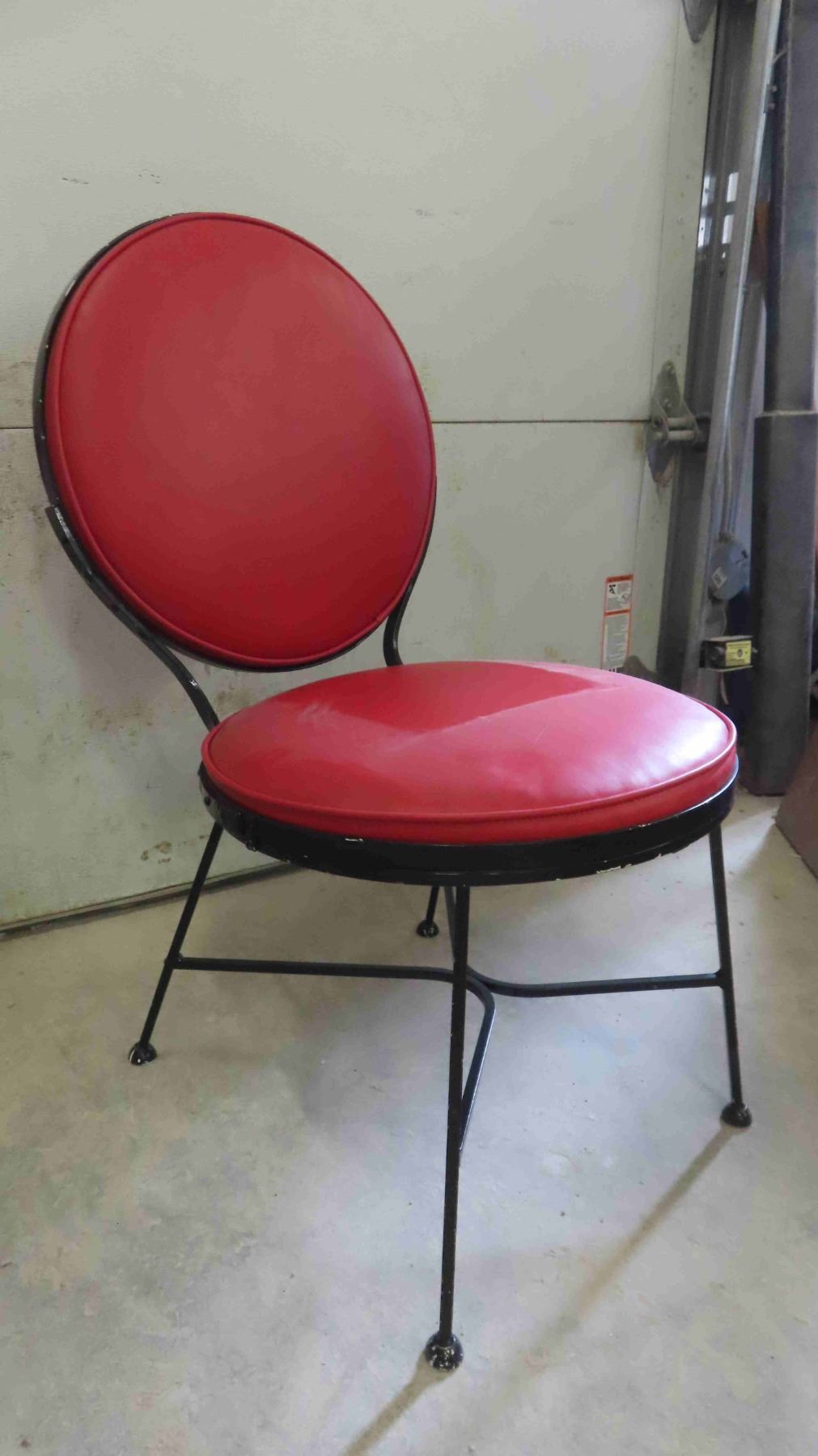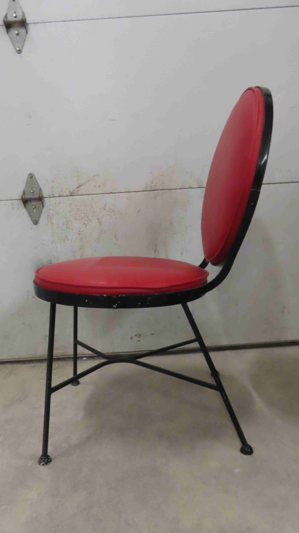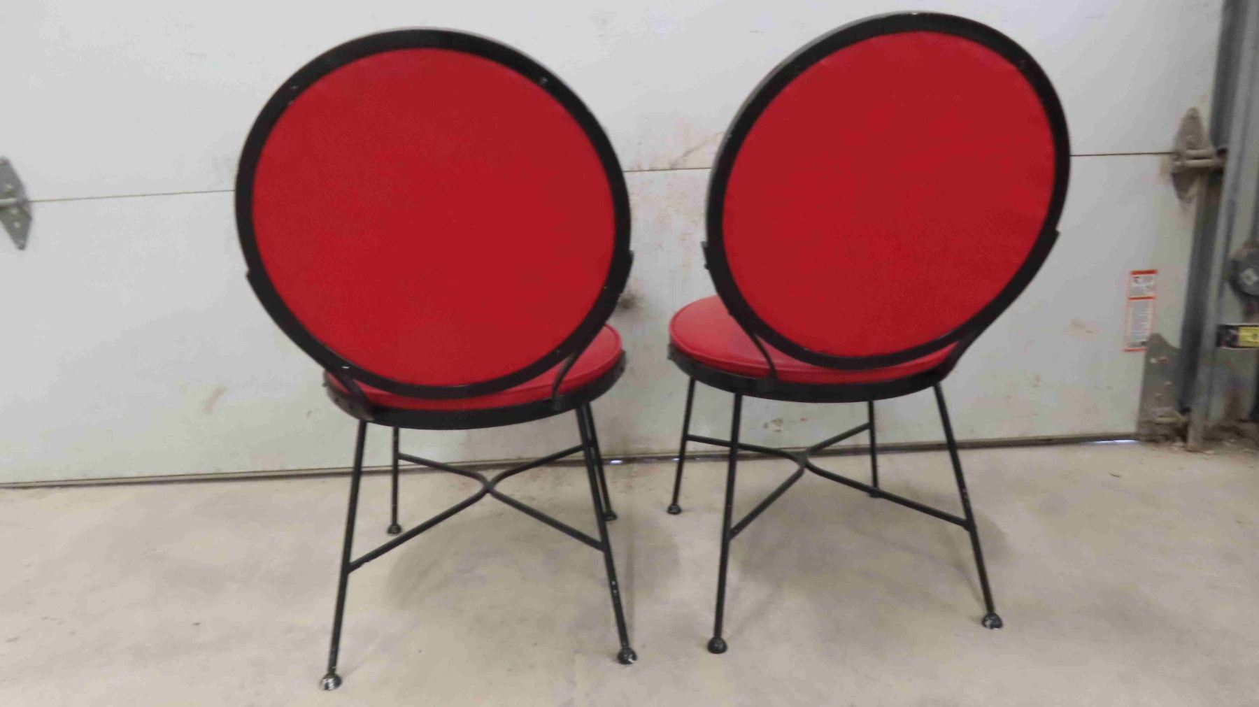 2 Vintage Chairs - Mid Century 1940-50 from Troy Sunshade Co. Wrought Iron Frame with Red Upholstered Seat + Back