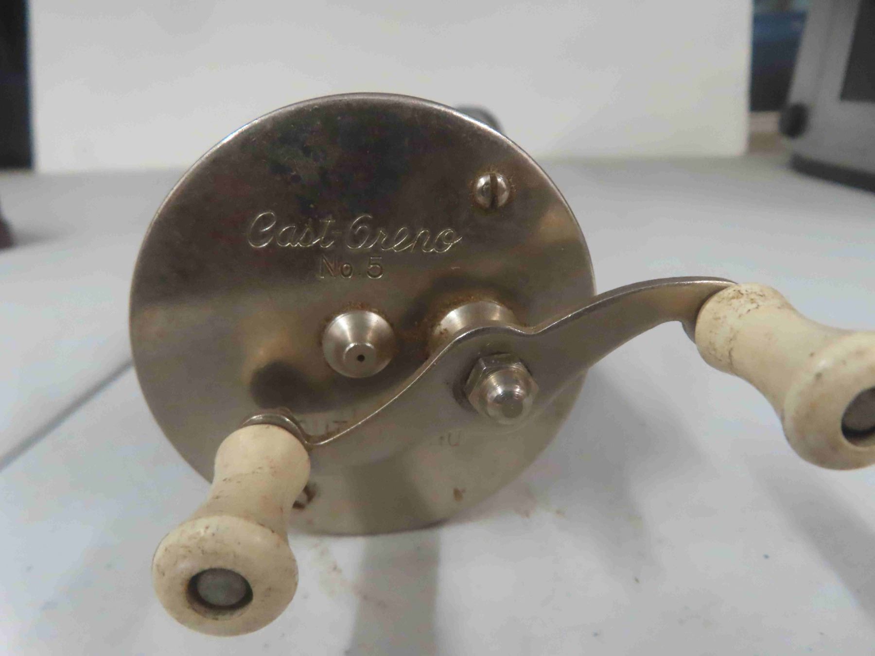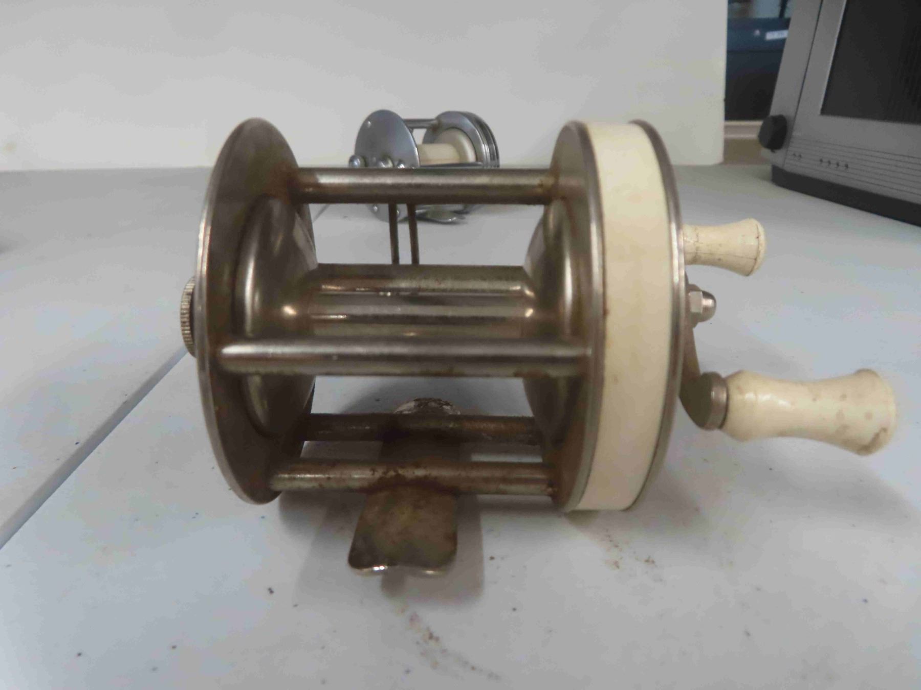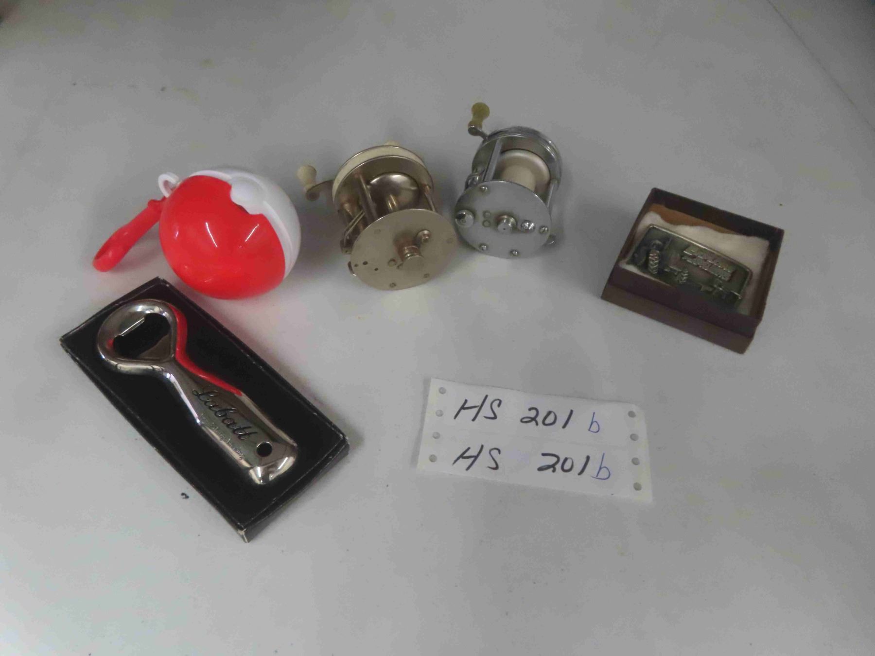 2 Vintage Fishing Reels , John Deere Buckle, Labatts Bottle Opener in Original Box