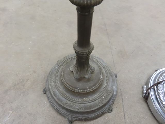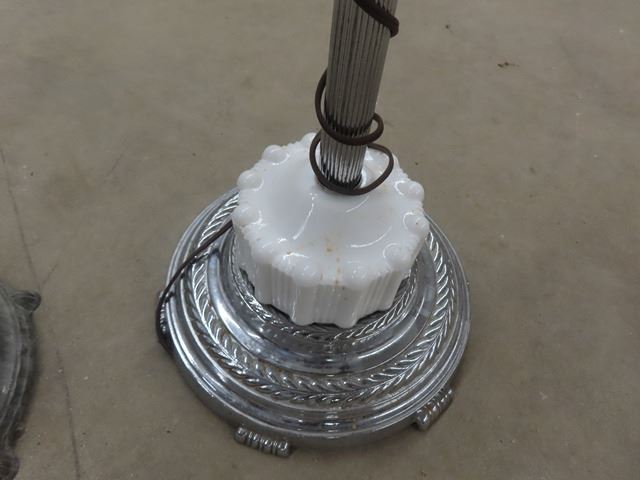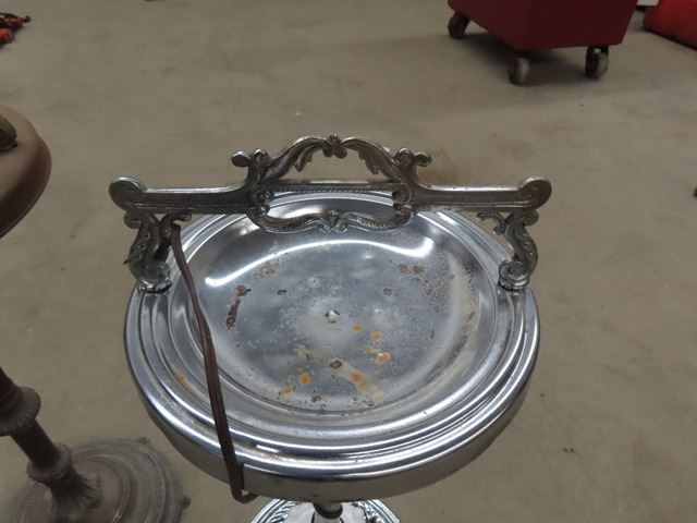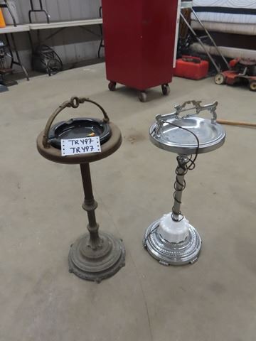 2 Vintage Floor Model Standing Ashtrays; 1 Chrome with Glass, 1 Metal with Heavy Base - Glass Base Lights Up - NOT Tested