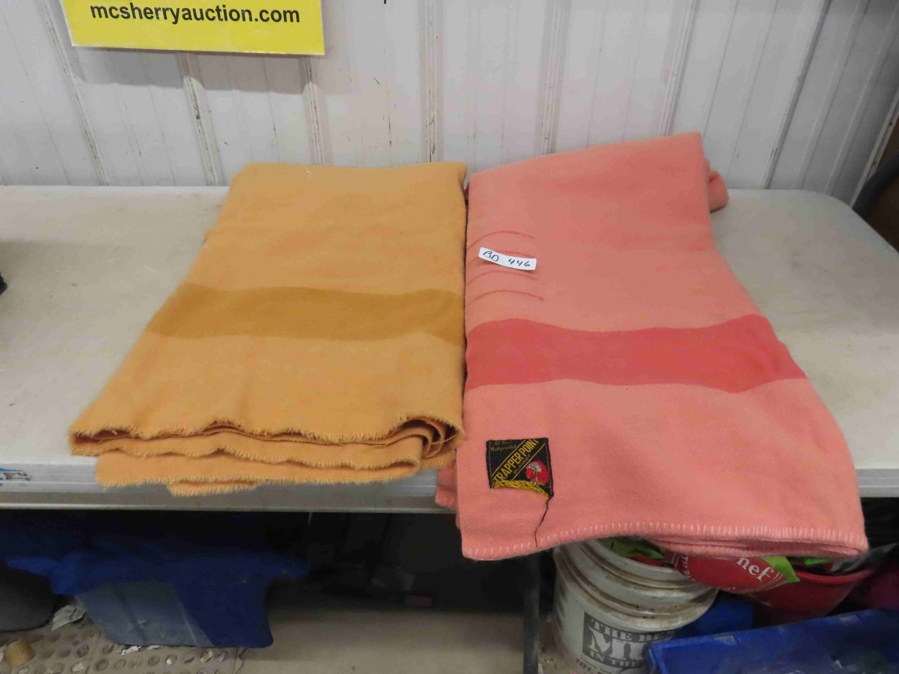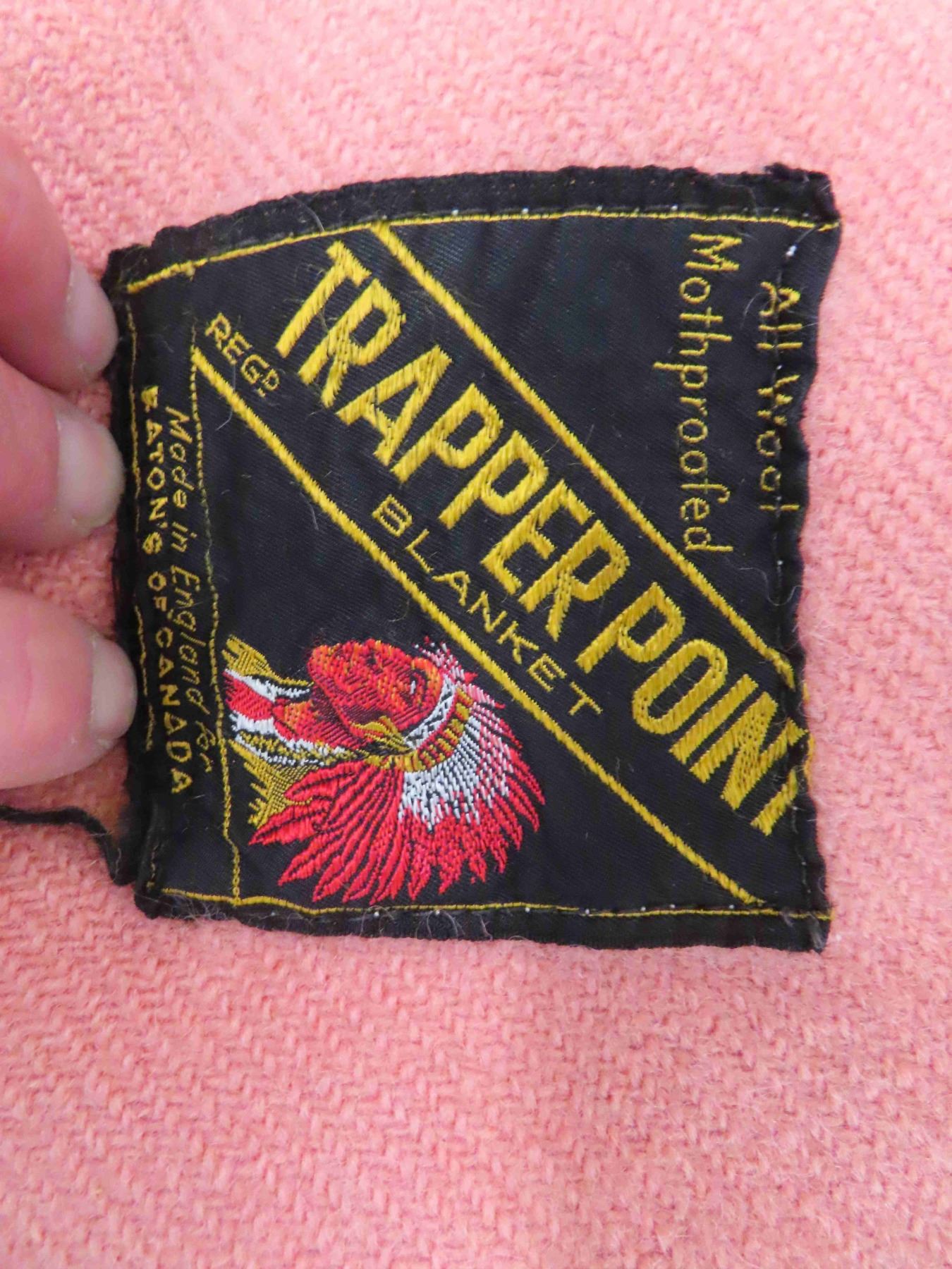 2 Vintage Fur Trade Point Blankets ; Pink 4 Point Eaton's Trapper Point - Exc. Condition & Trimmed 4 Point Blanket