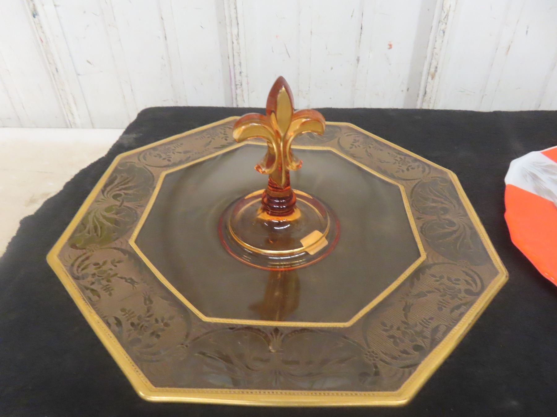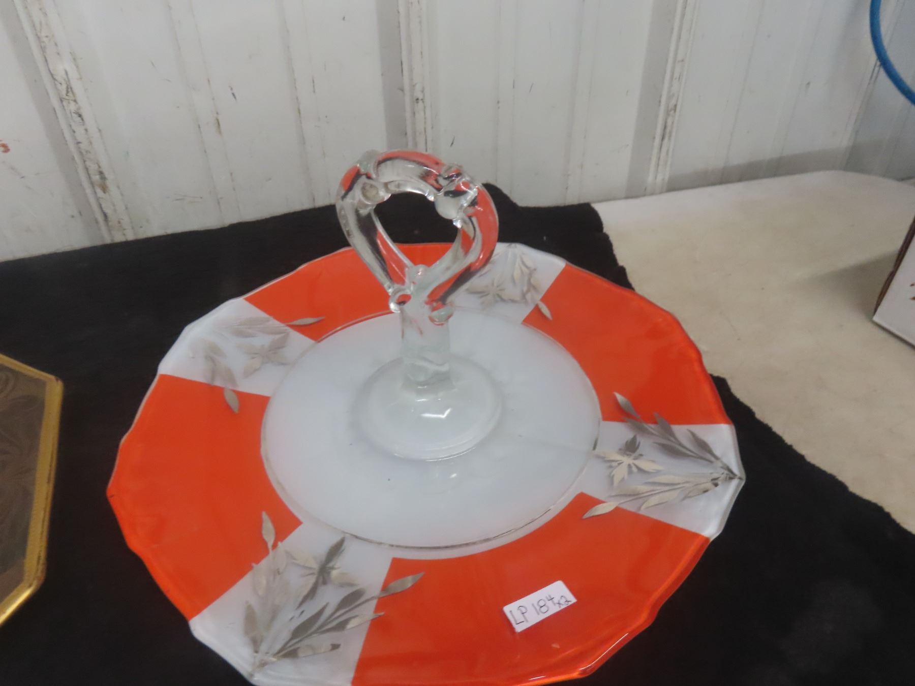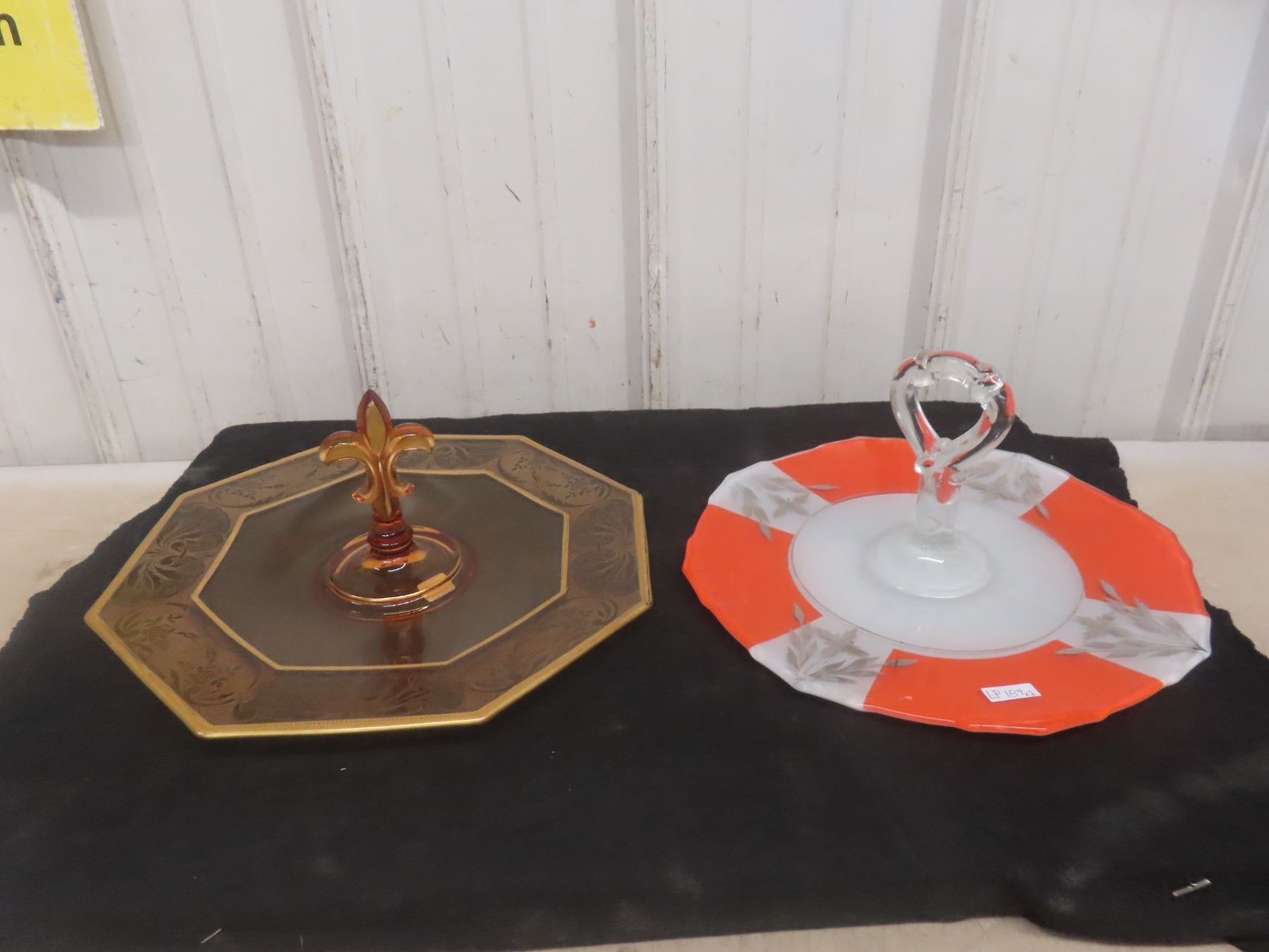 2 Vintage Glass Coloured Etched Dessert Trays for Daintys