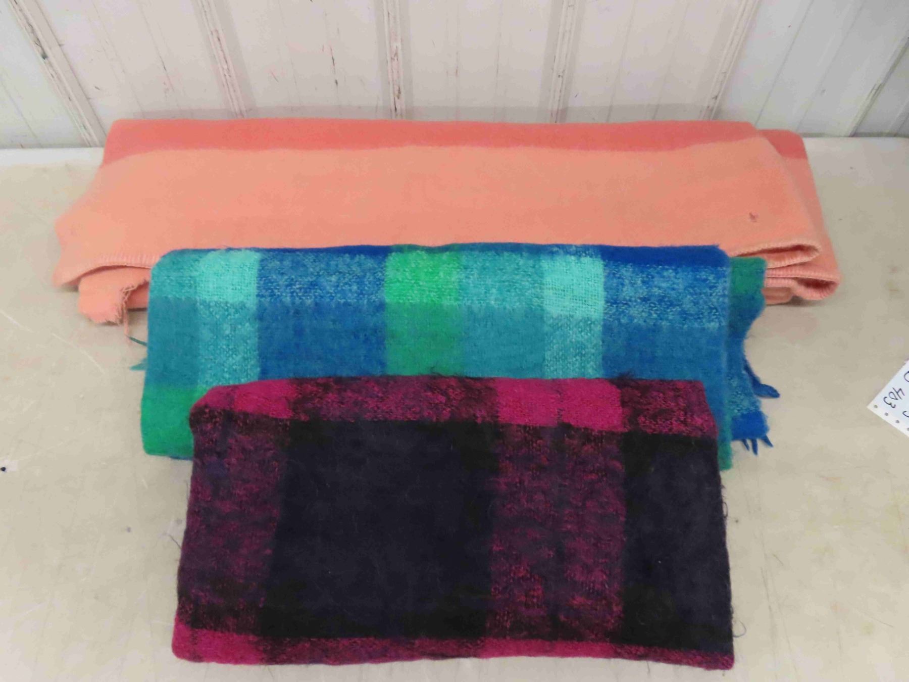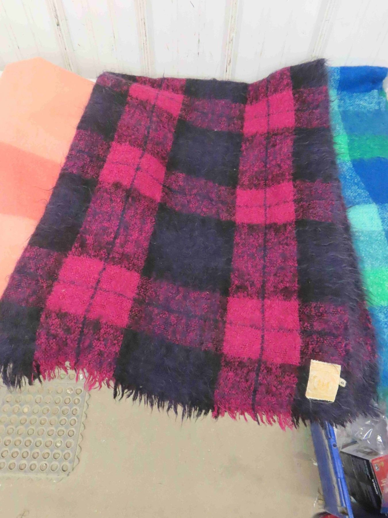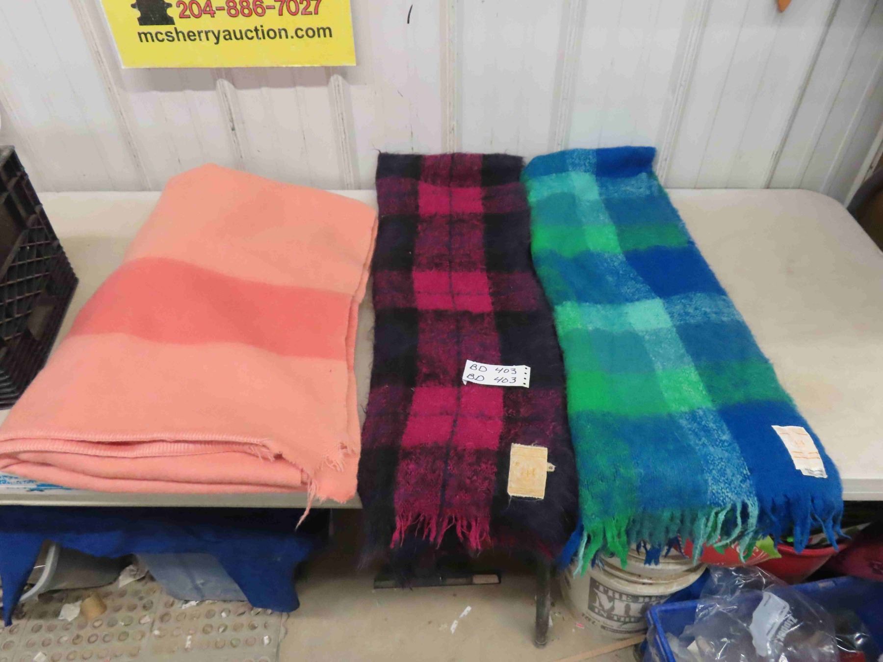 2 Vintage Hudsons Bay Company Mohair Blankets , 1 Wool 4 Point Blanket