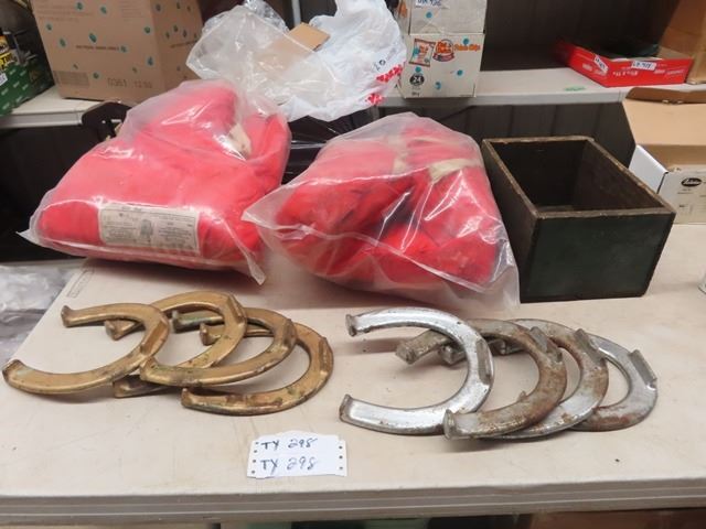 2 Vintage Life Jackets & 2 Sets of Horse Shoes