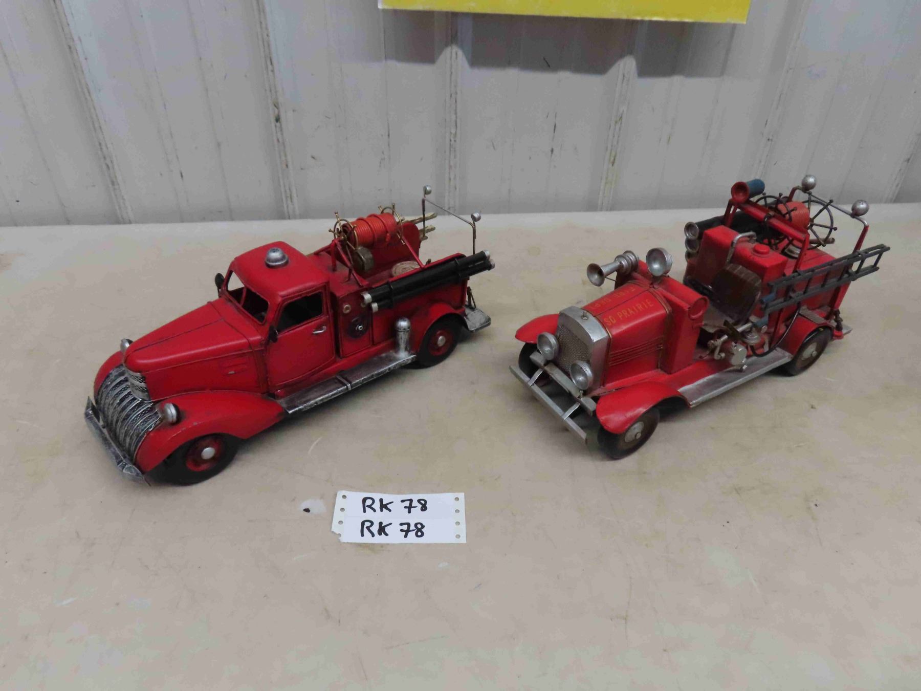 2 Vintage Look Pressed Metal Firetrucks 15" Long