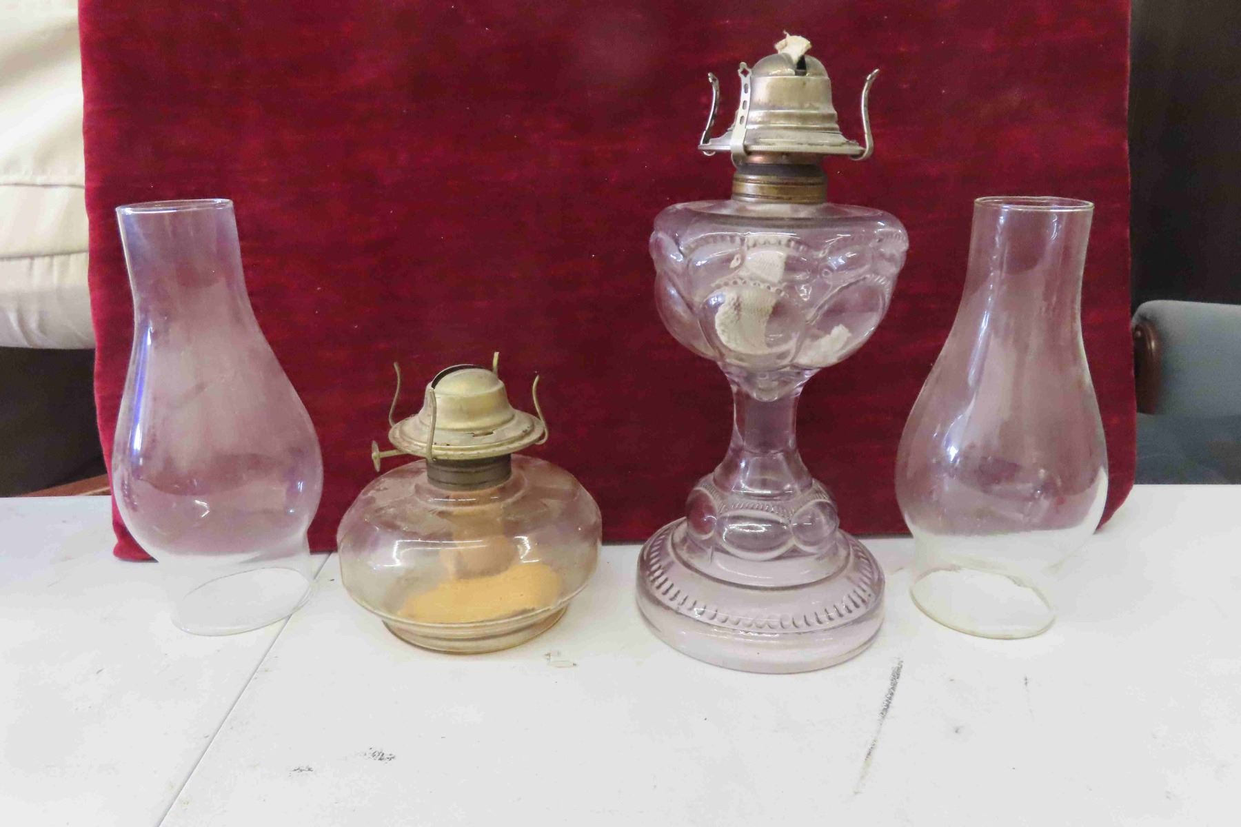 2 Vintage Oil Lamps Including a Peanut Lamp Tallest 18"
