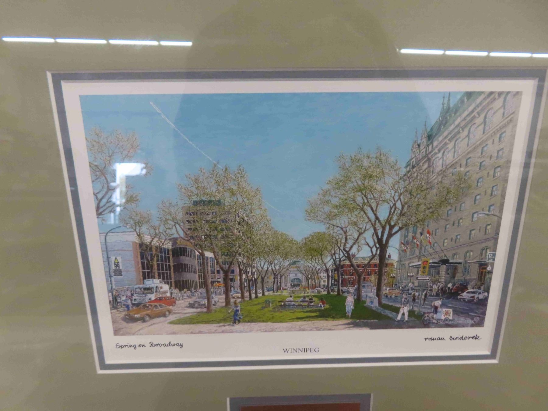 2 Vintage Roman Swiderek Downtown Winnipeg Professionally Framed Prints 16'' x 14'' in Frame