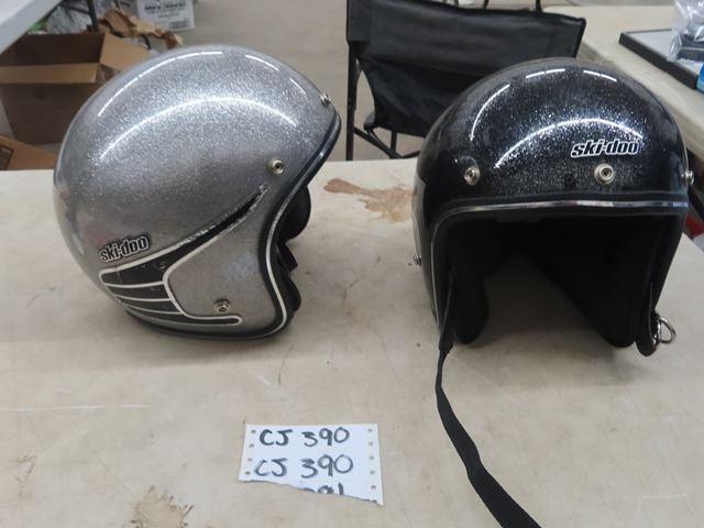 2 Vintage Ski-Doo Helmets with Sparkle Paint Job