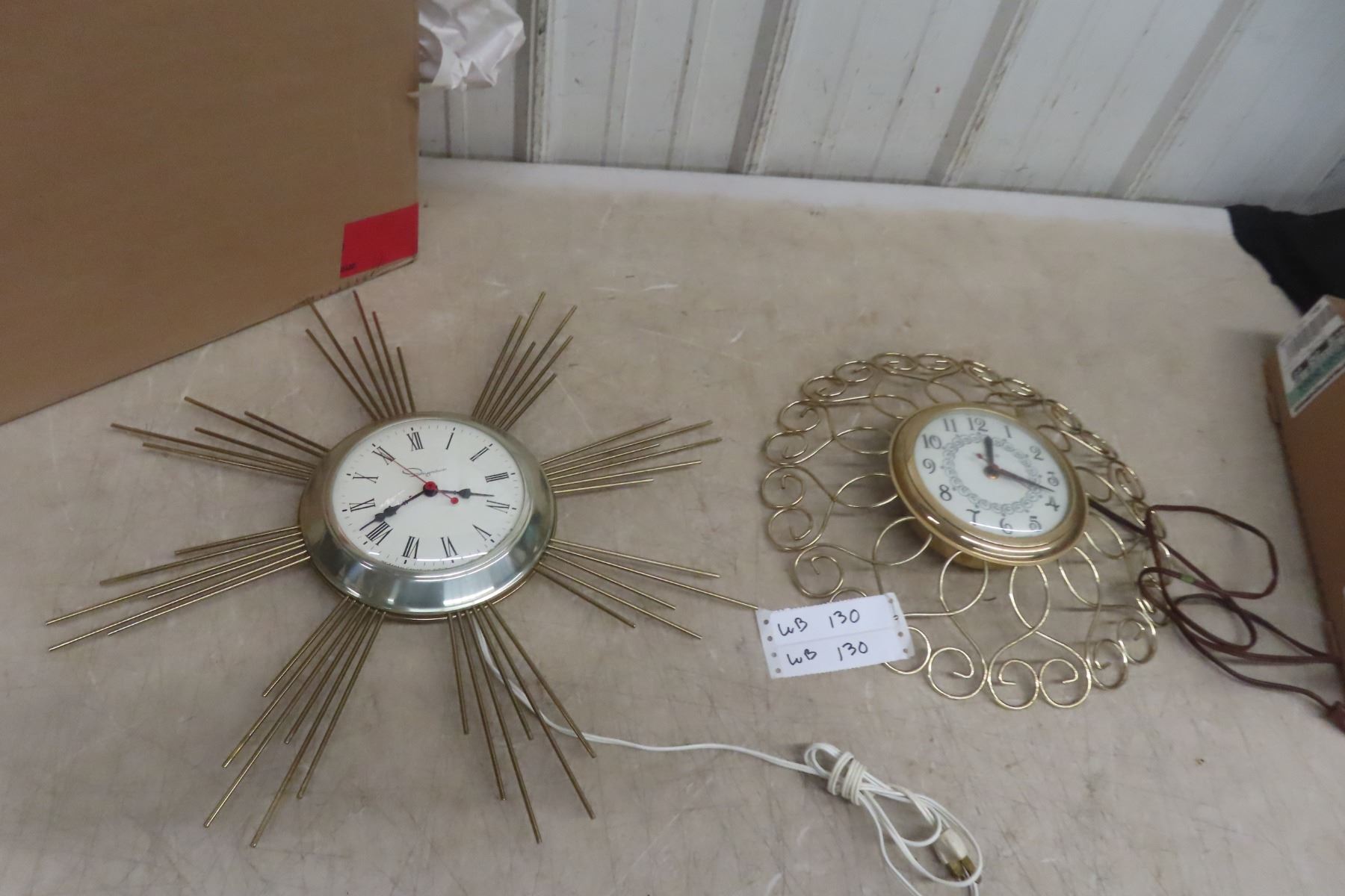 2 Vintage Starburst Mid Century Electric Wall Clocks - Working - 1 United 1 Ingraham