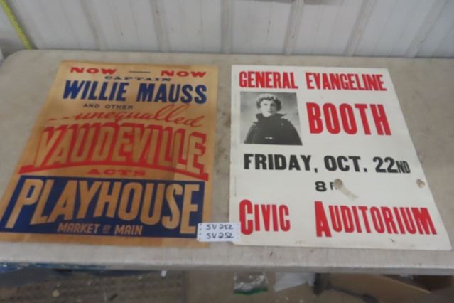 2 Vintage Vaudville Posters - Winnipeg ; Willie Mauss + Evangeline Booth 22" x 26"