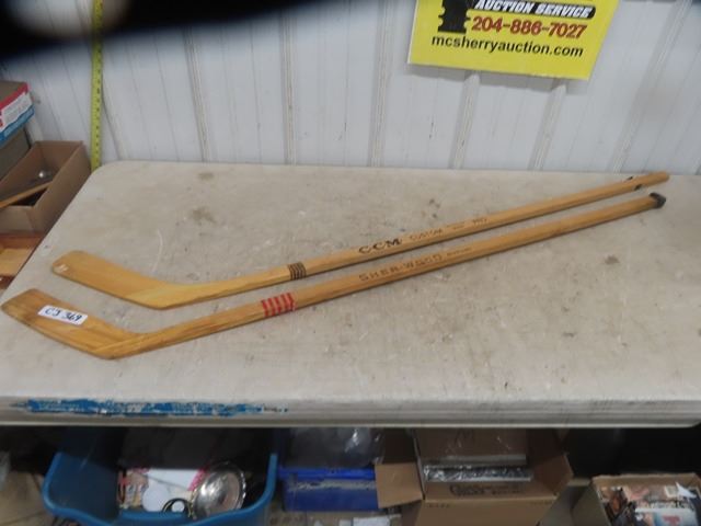 2 Vintage Wooden Hockey Sticks: Sherwood, CCM Custom