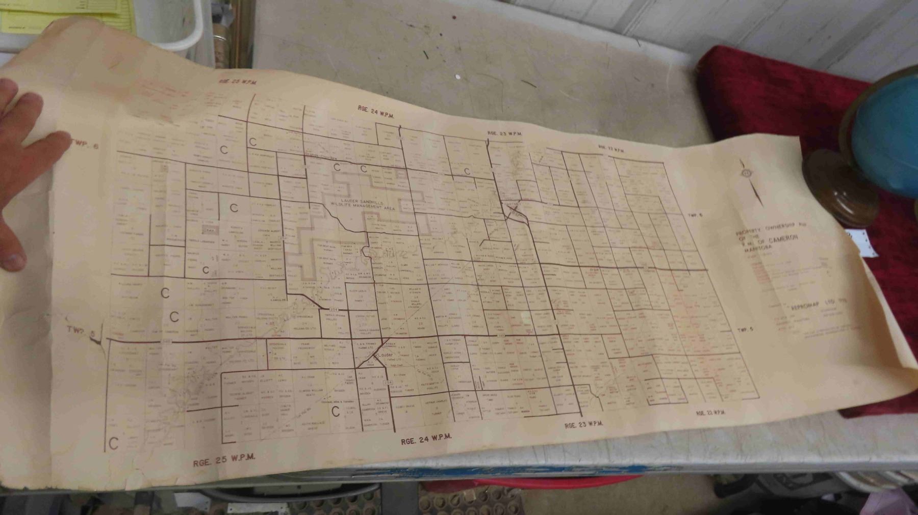 2 Vintage World Globes. 1 Is Large 15'' High , Other is 10''. Both in Excellent Condition. & 2 Maps: Cameron MB Property Ownership, Regina SK Sectional Map