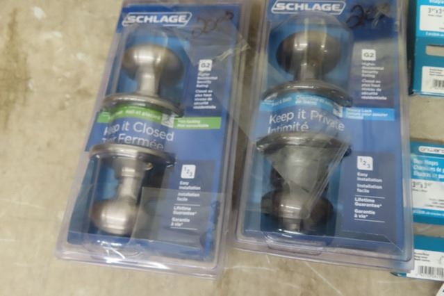 2 Wall Mount Light Fixtures, 10 New Door Hinges, 2 New Schlage Door Knobs