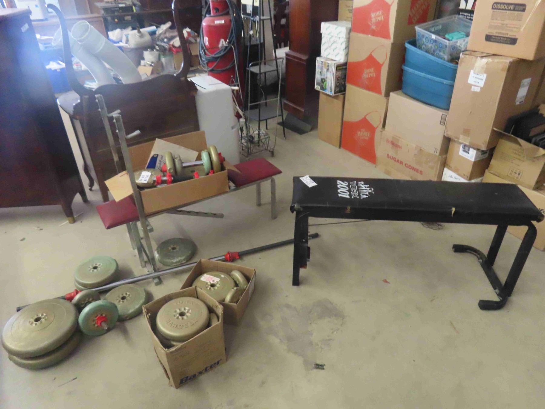 2 Weight Benches, Bar, Dumbbell & Good Amount of Weights