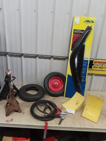 2 Wheel Barrow Tires 480-400-8, Stabilizing Jacks, Booster Chables, & Toyota Vent Visor