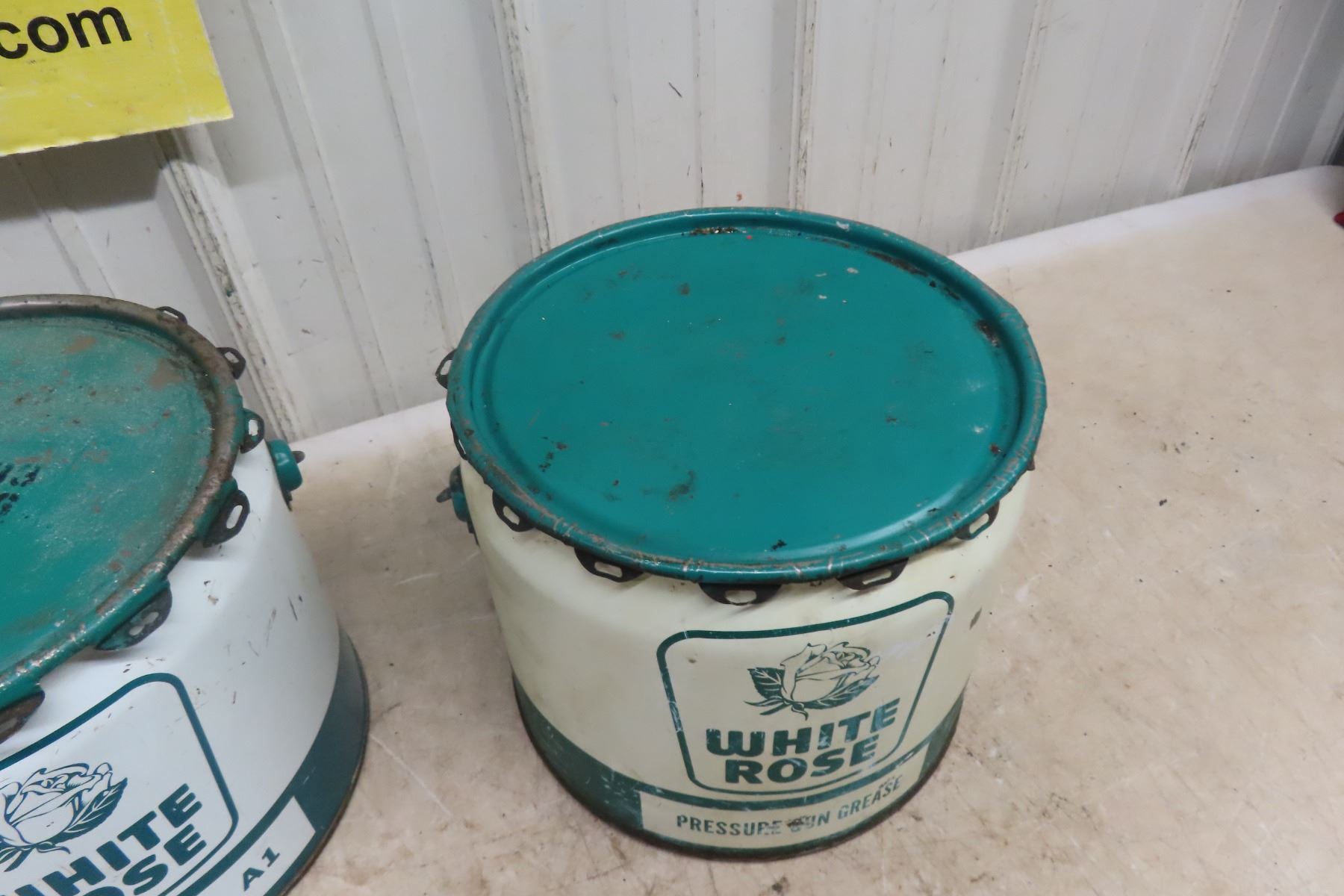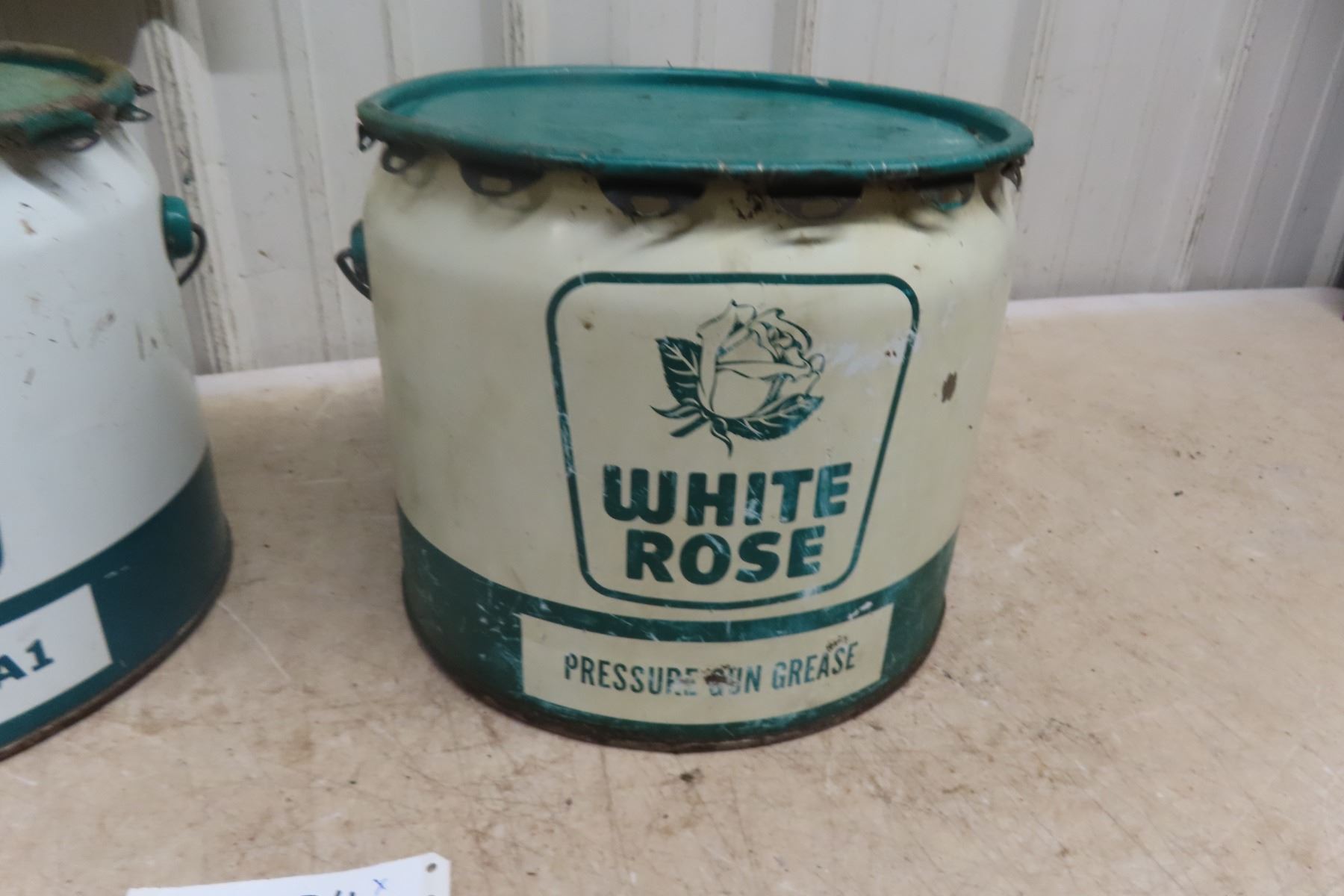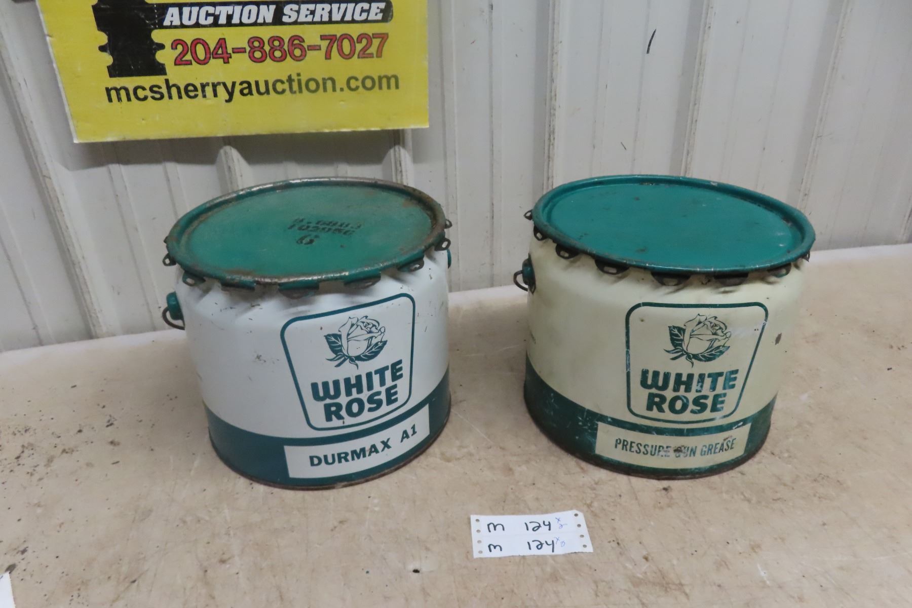 (2) White Rose Pails: Pressure Gun Grease 25lbs, Durmax A1 25lbs