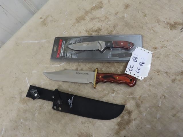 2 Winchester Hunting Knives - Both With Holsters ; New 10" & Like New 14"