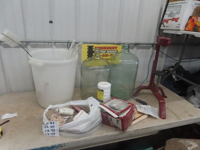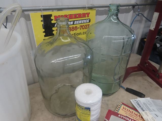 2 Wine Carboys, Wine Cork Press & Various Wine Making Supplies