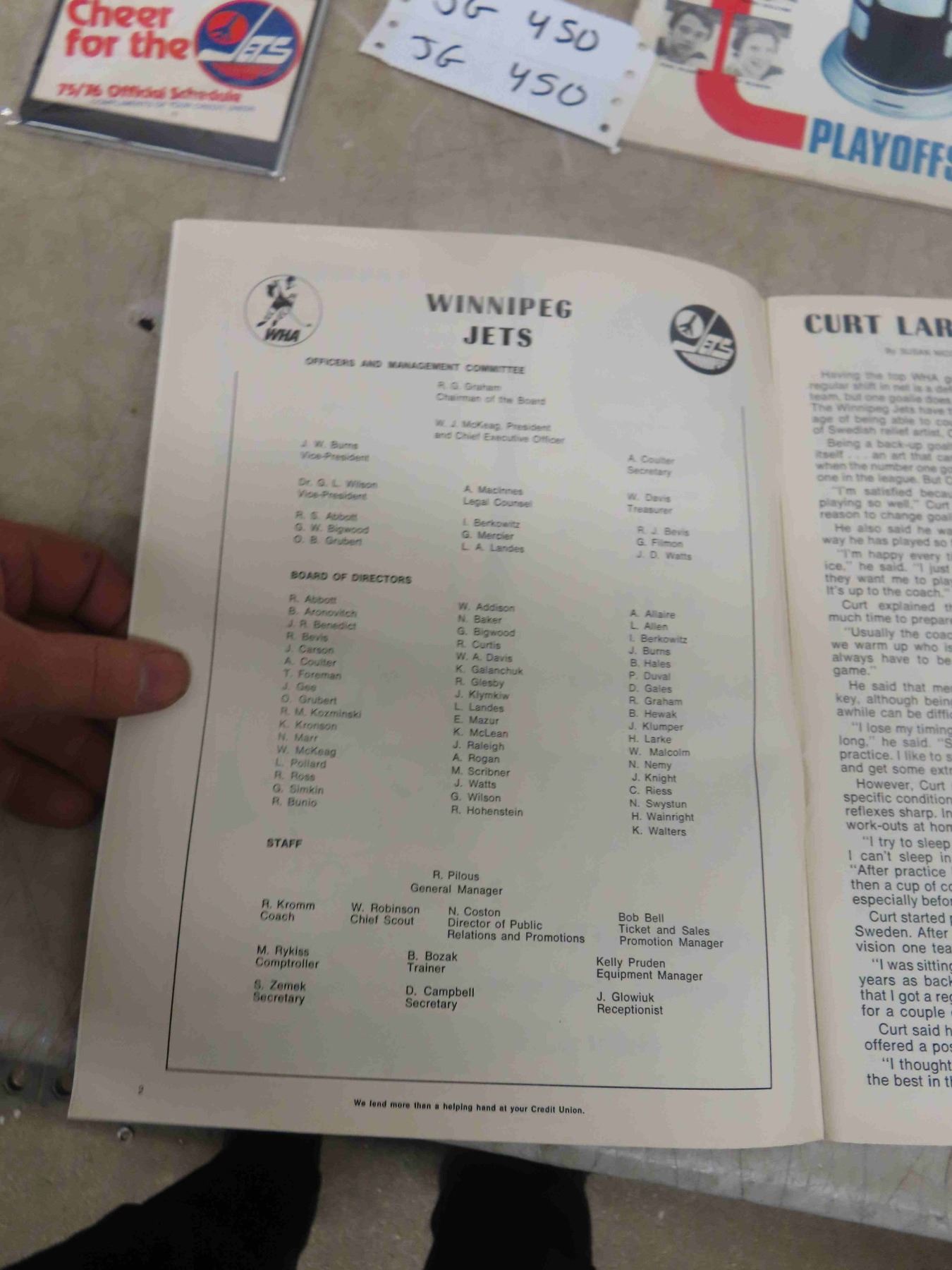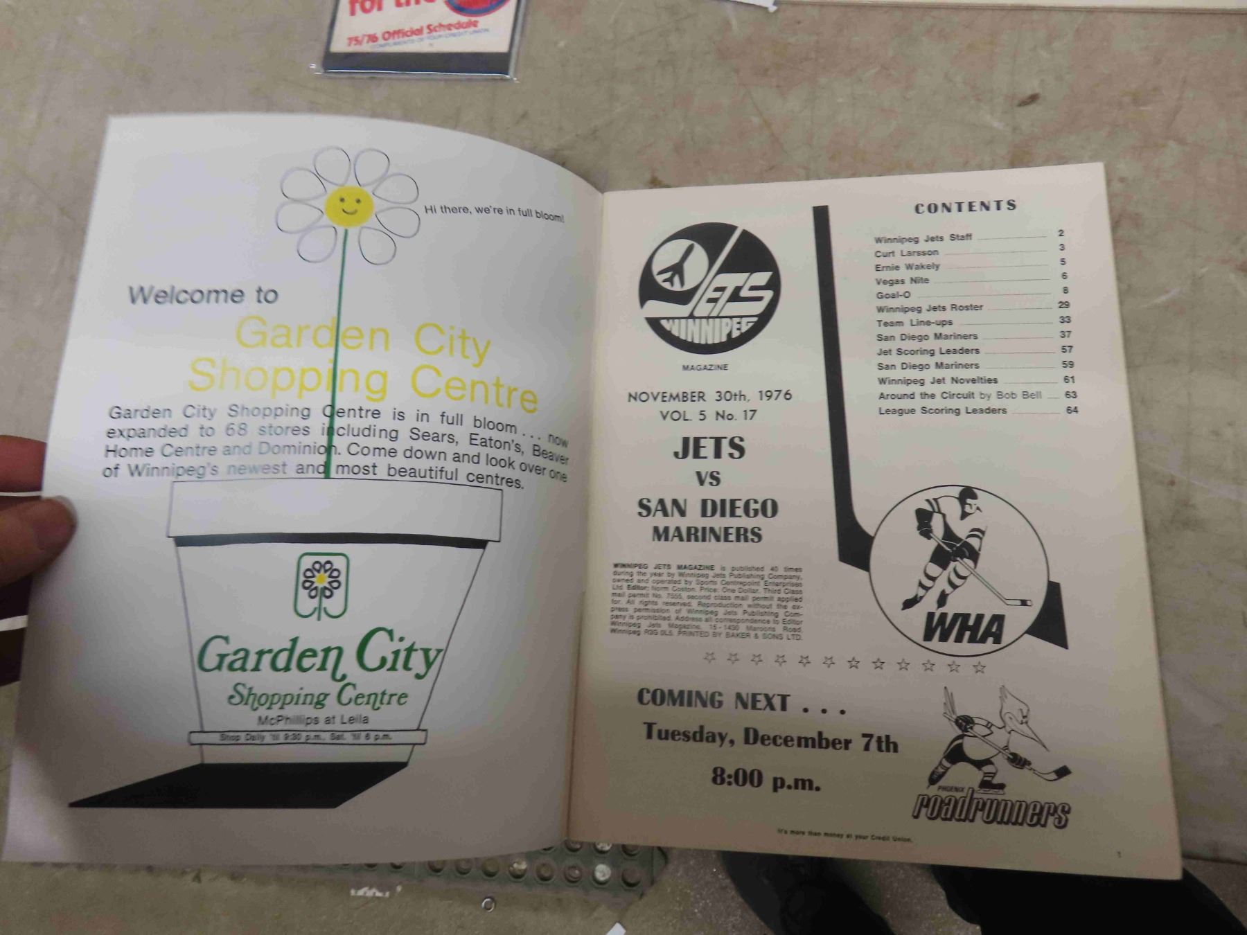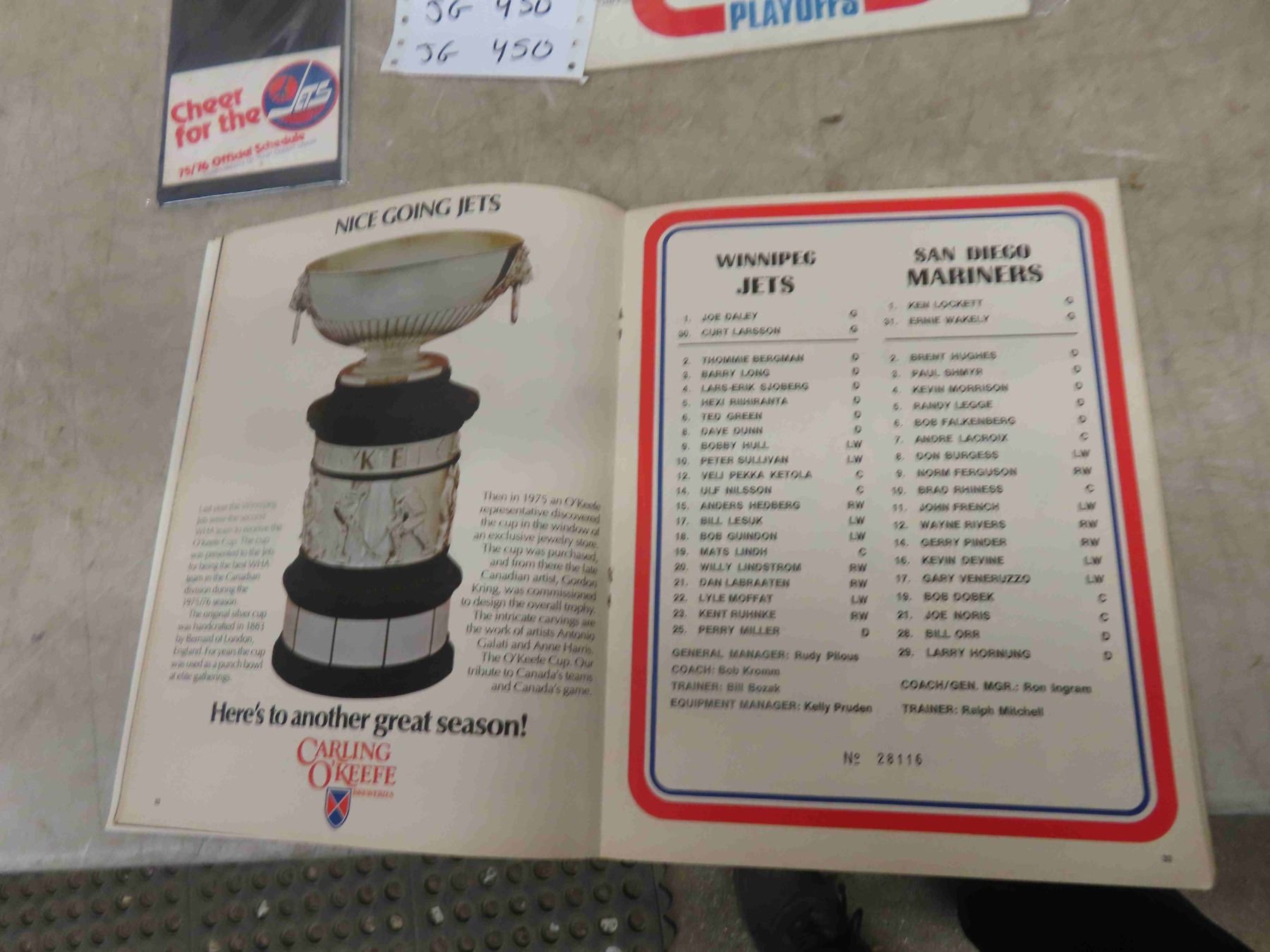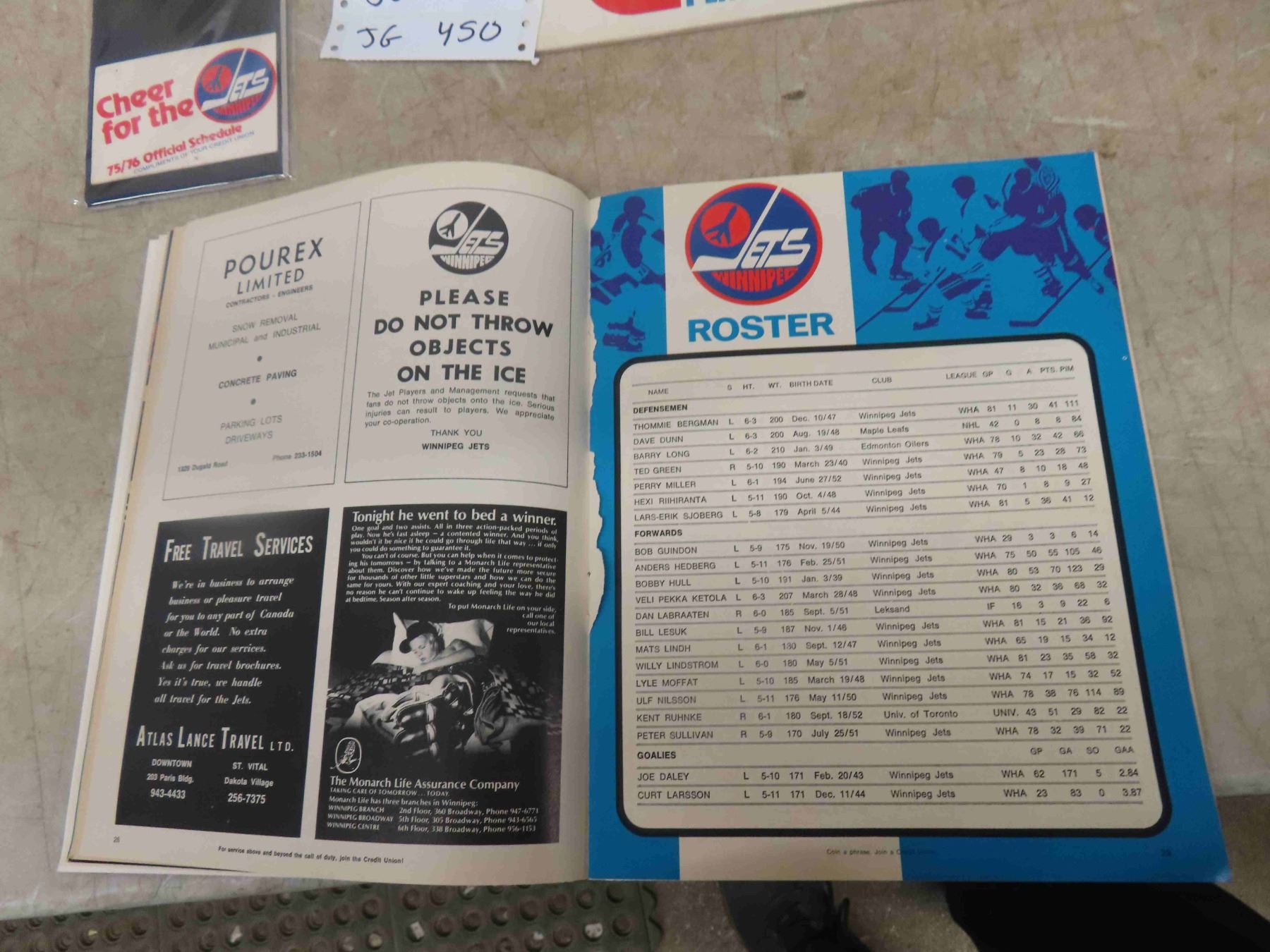 2 Winnipeg Jets Magazines Souvenir Calendar, 1975/76 Official Schedule