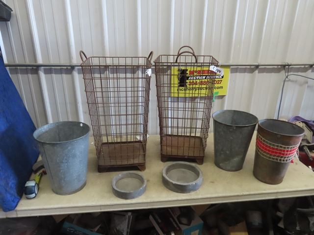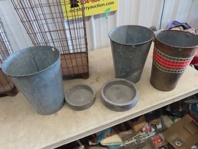 2 Wire Garbage Cans 26"H 14" x 14" & Galv Pails