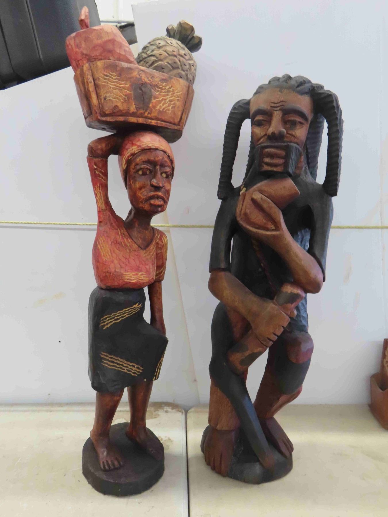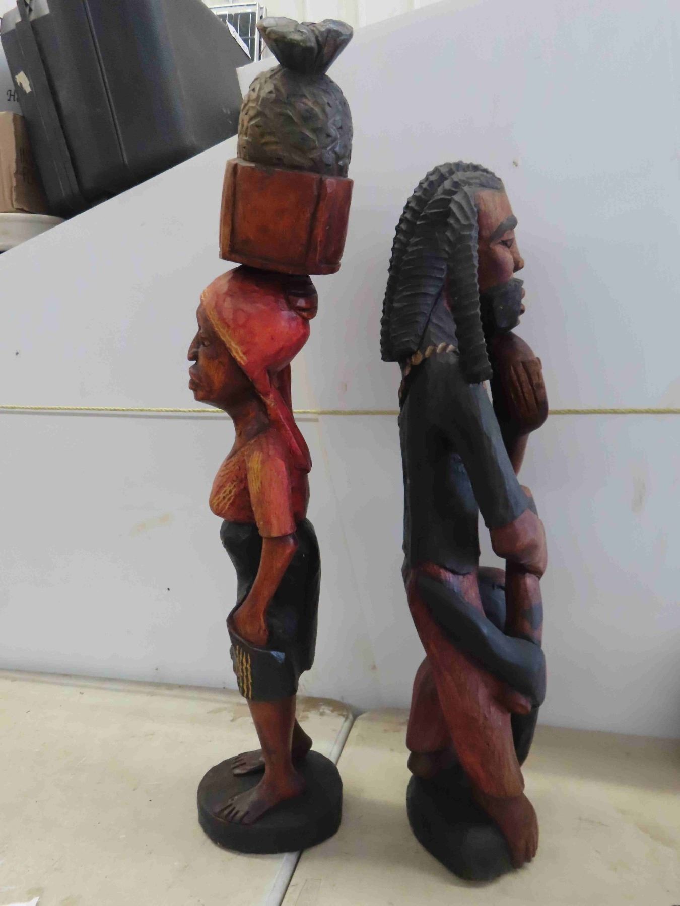 2 Wood Carved Tribal Figures 32'' & 28'' Tall