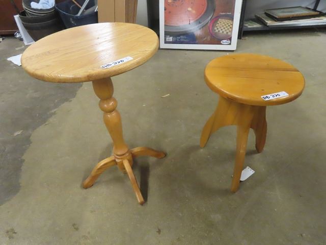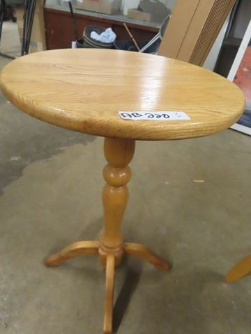 2 Wood Pedistal Stands 1) Oak 26" H X 16.5 " RD 1) Maple 19.5" x 14" RD