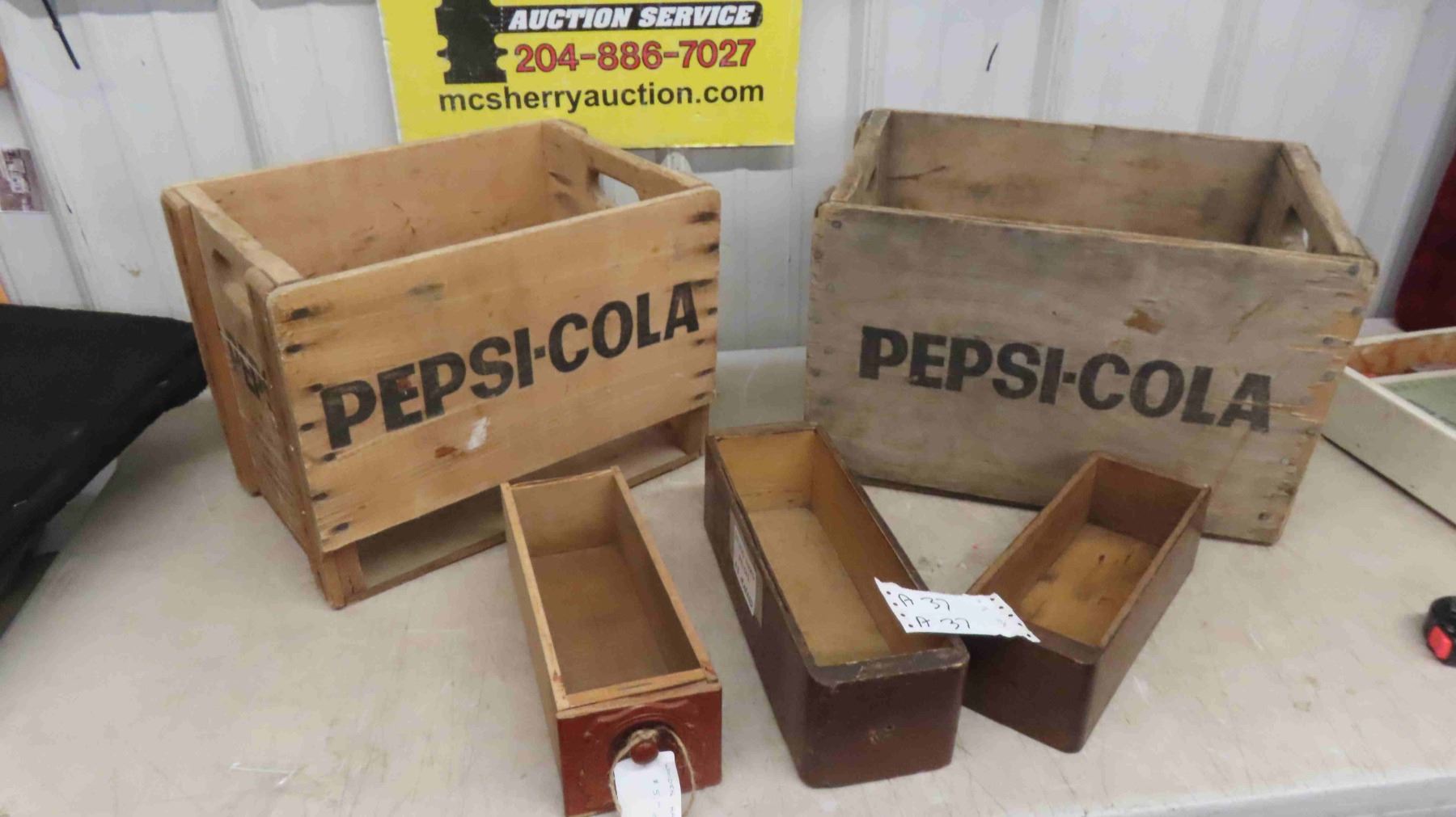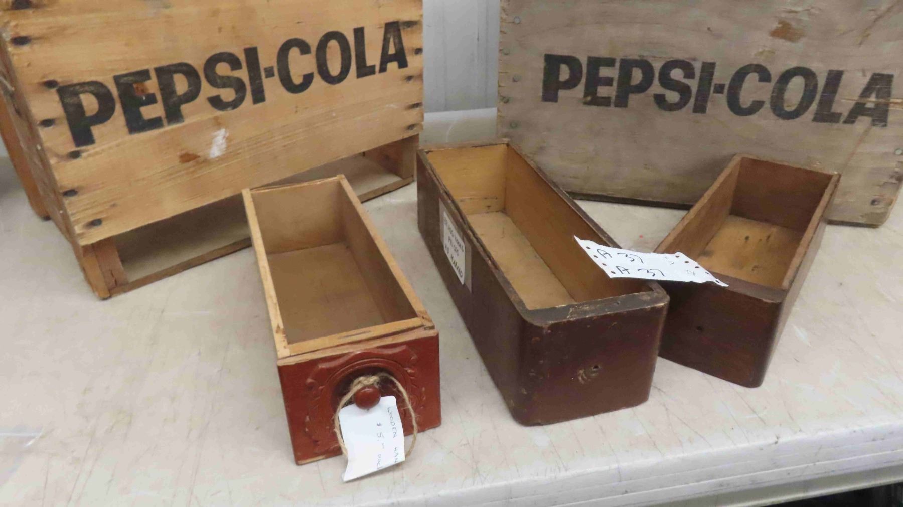 2 Wood Pepsi Crates , 13 Sewing Drawers