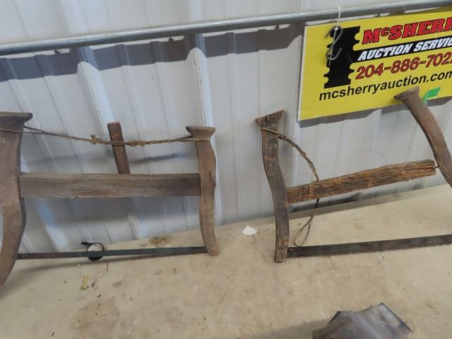 2 Wood Saws , & Old Corn Planter