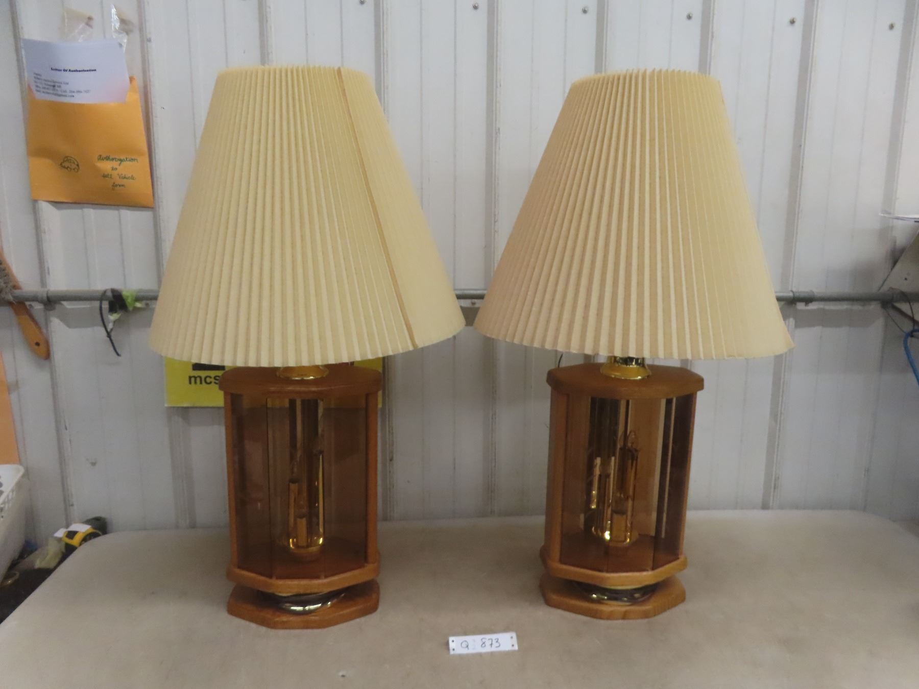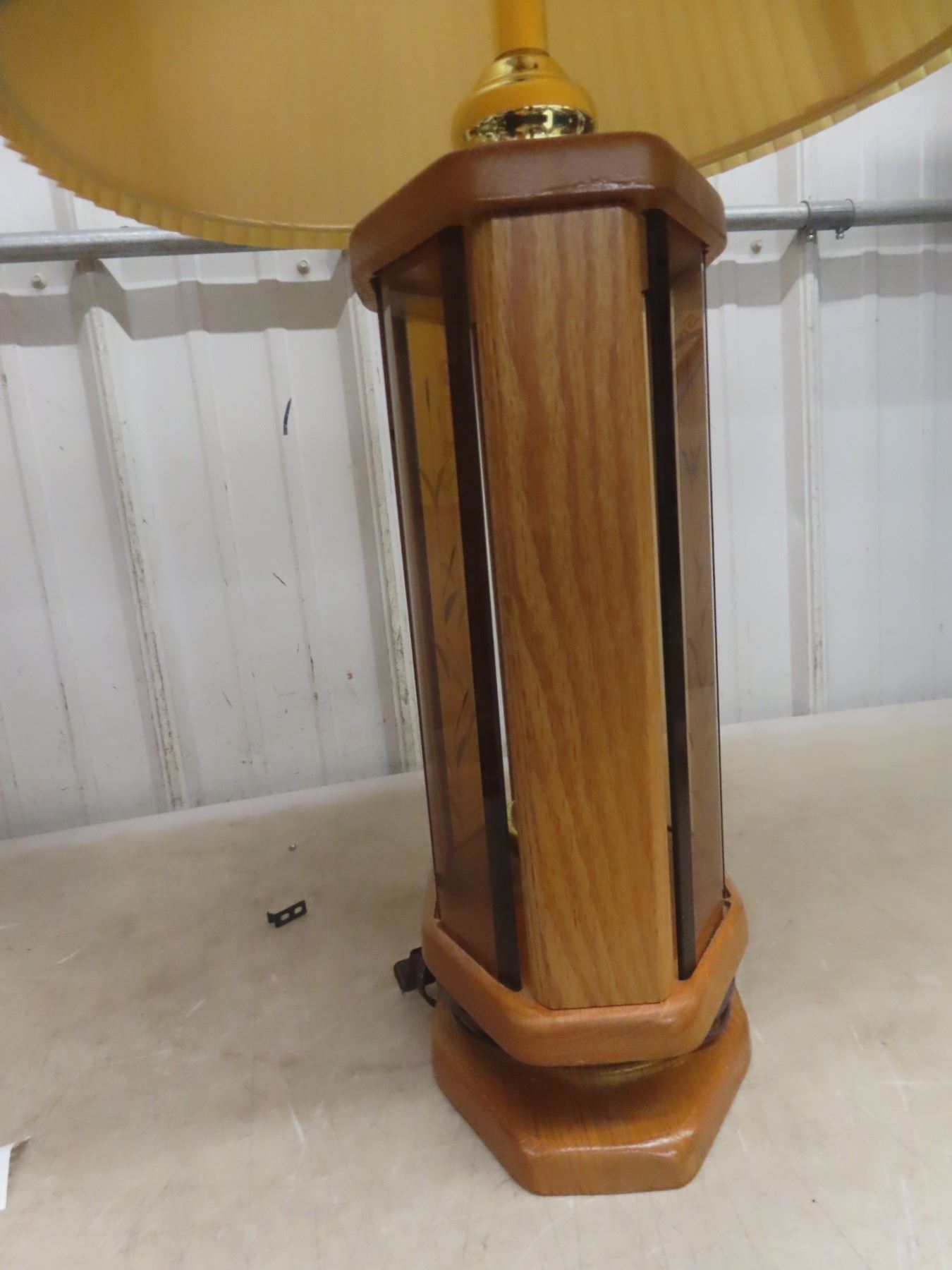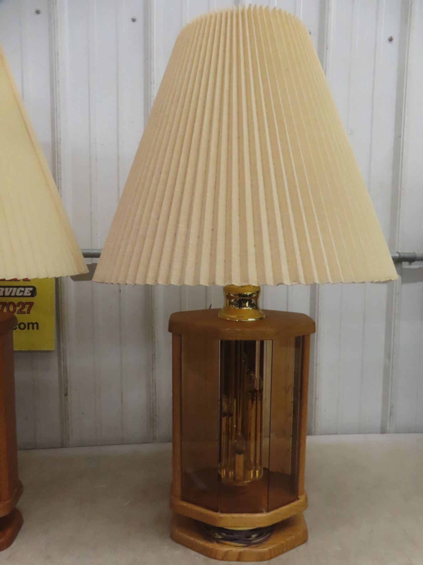 2 Wood/glass Table Lamps W/ Shades, 34" Tall