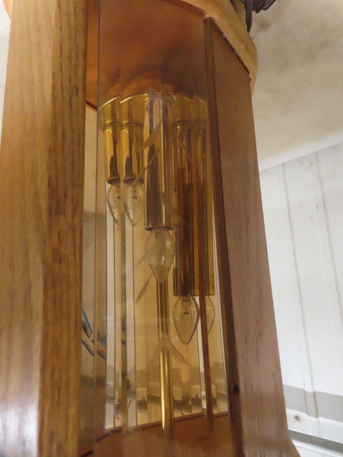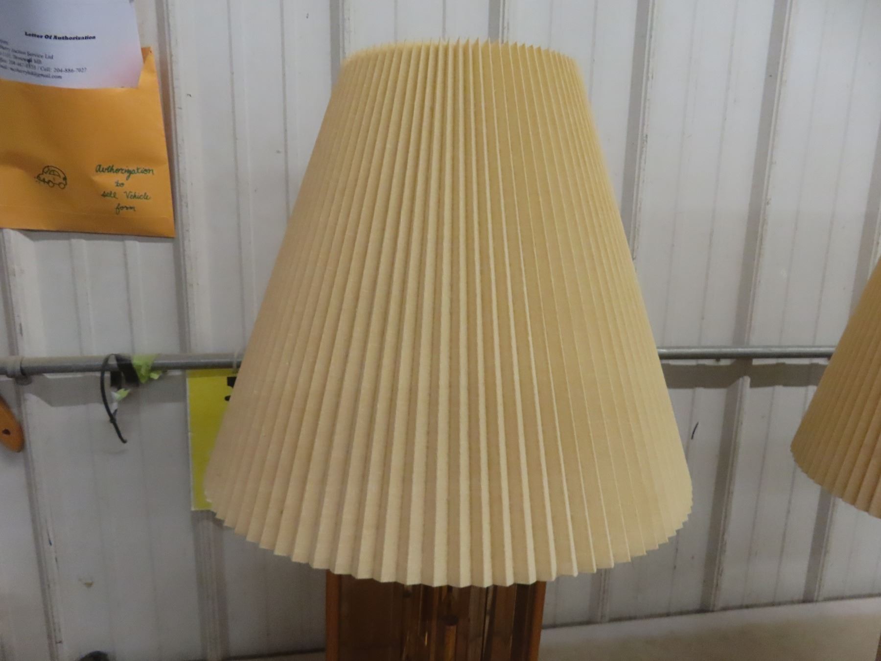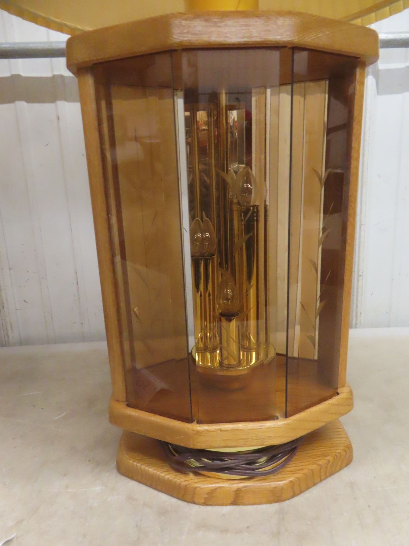 2 Wood/glass Table Lamps W/ Shades, 34" Tall