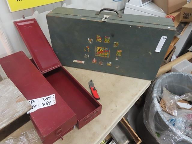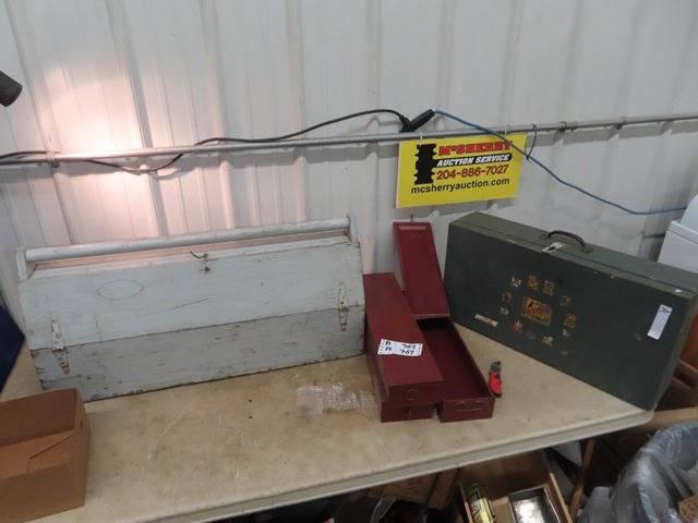 2 Wooden Carpentry Boxes, & 3 Metal Ammo Containers