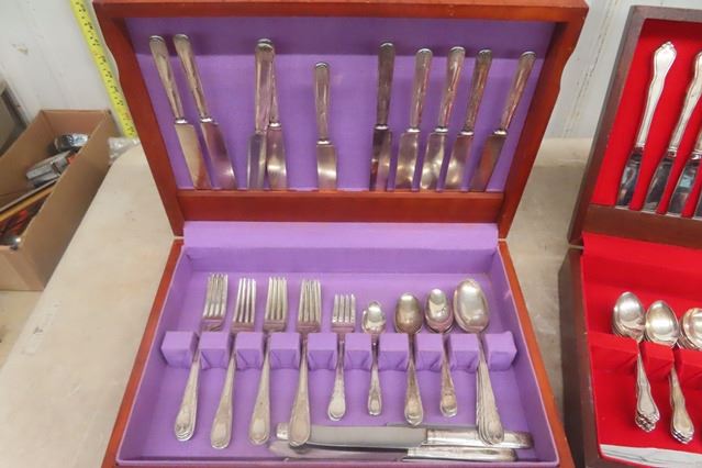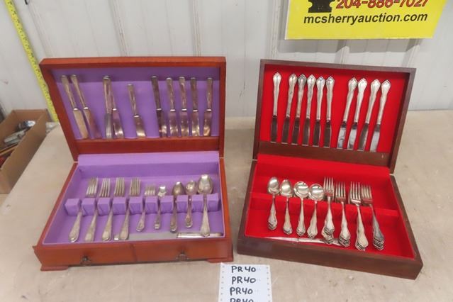2 Wooden Chests of Cutlery- 44 pcs Modern Rose, 58 pcs Oneida