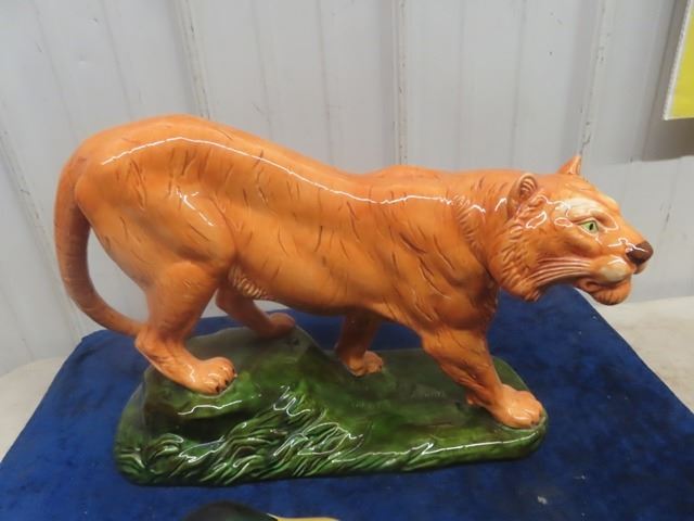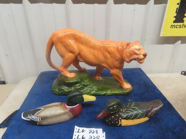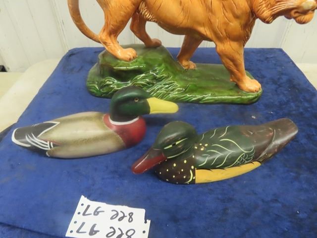 2 Wooden Duck Displays & Ceramic Lion 12"x16"