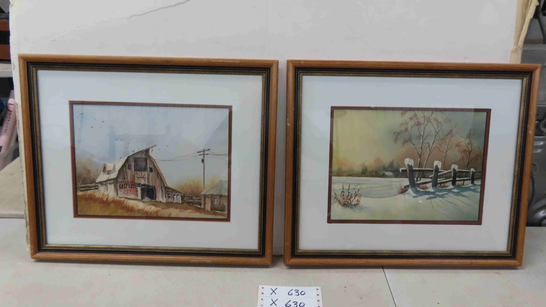 2 Wooden Frame Pictures - Farm Scene 14.5" x 17.5"