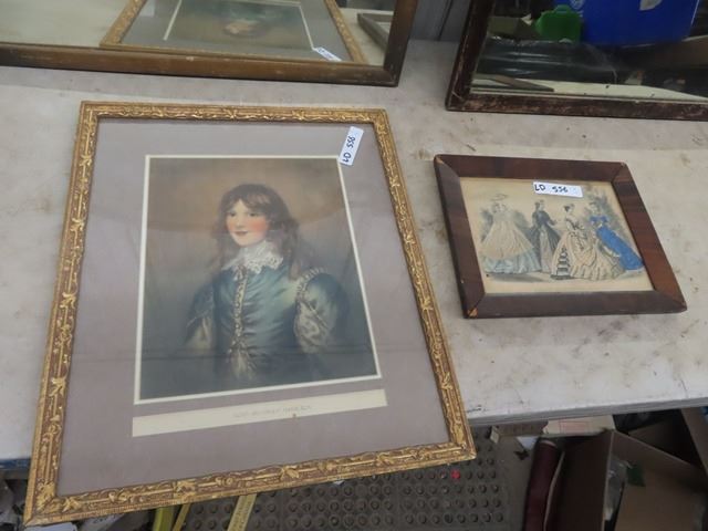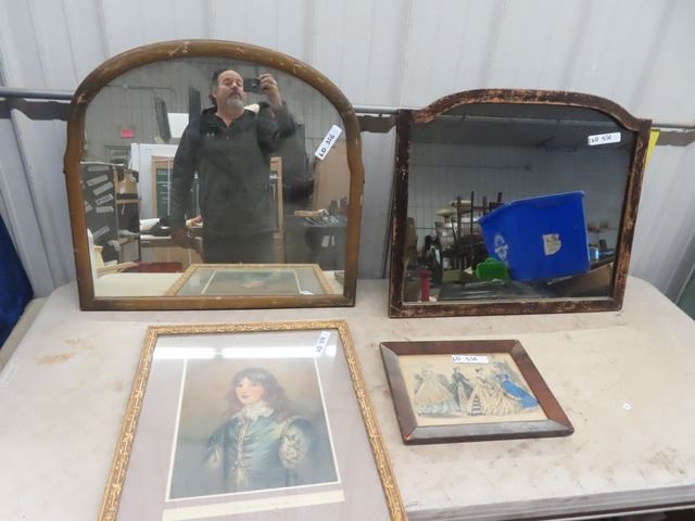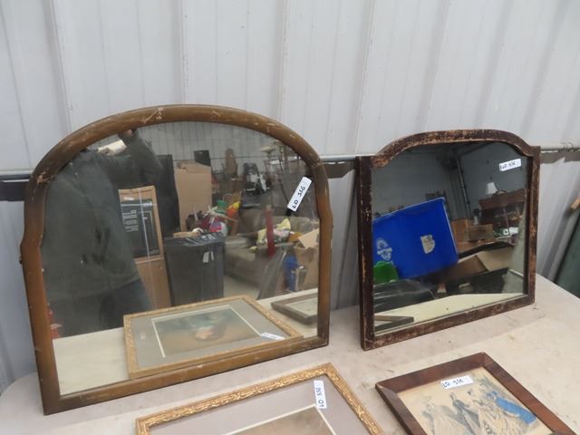 2 Wooden Framed Mirrors - 1 is 26" x 28" & 1 is 24" X 28" & 2 Pictures