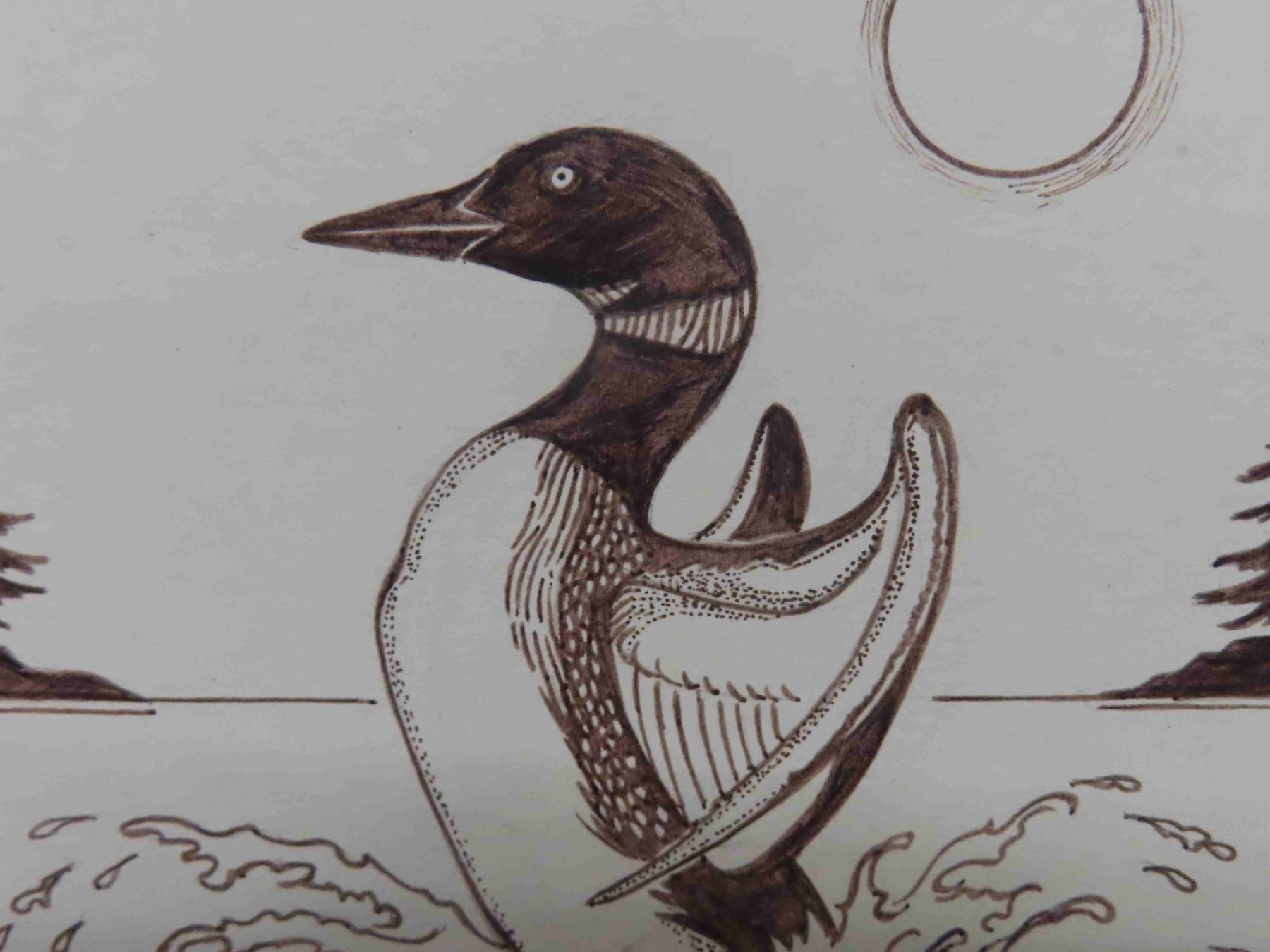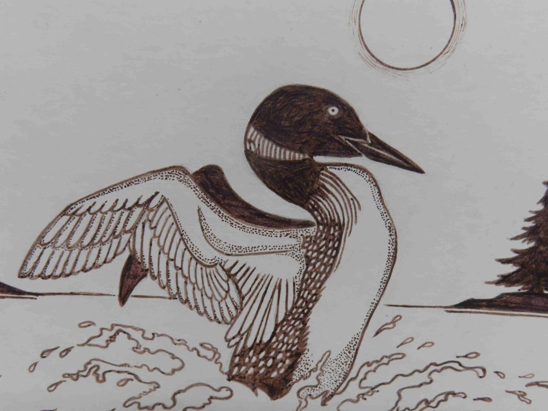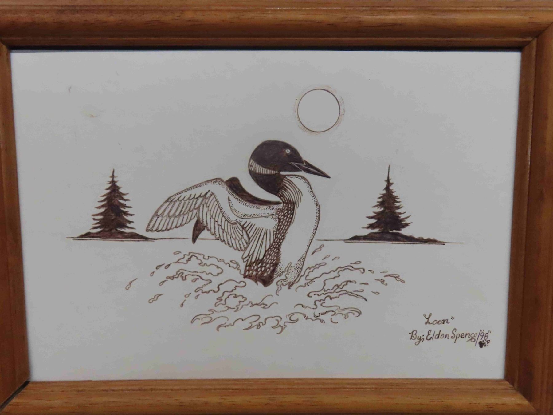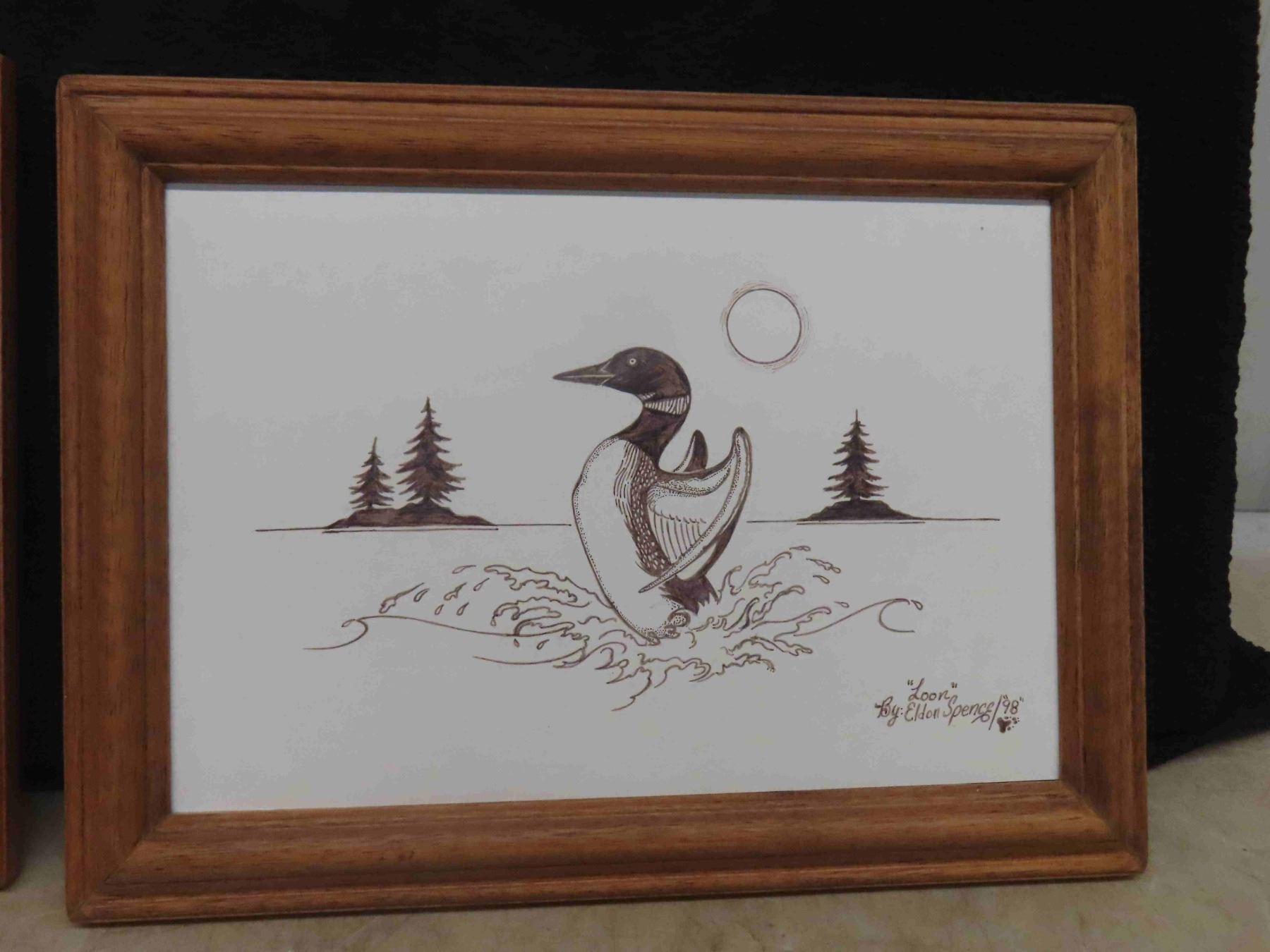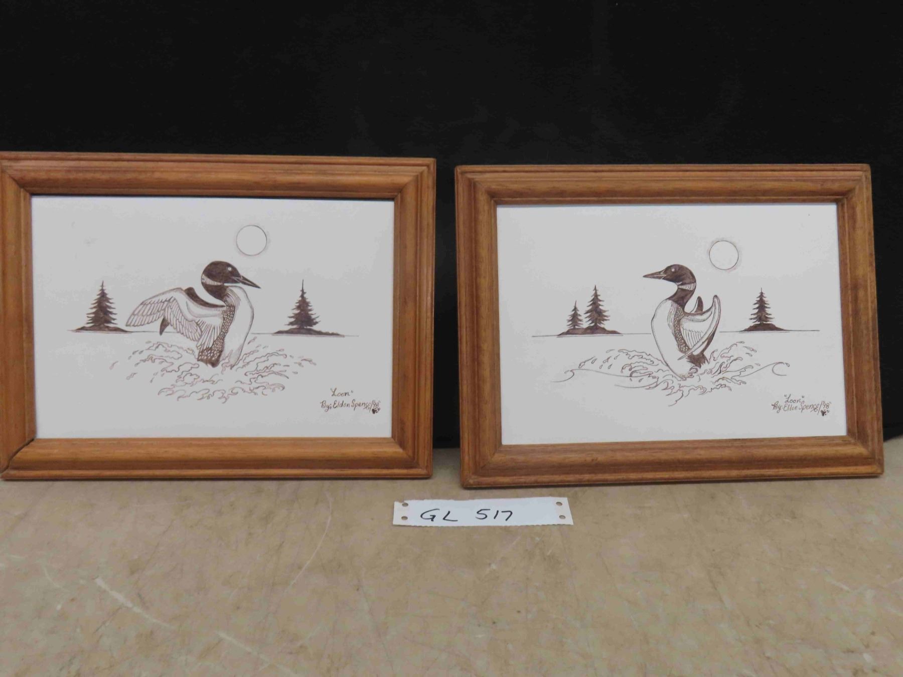 (2) Wooden Framed Pictures ' Loon' by Elton Spence