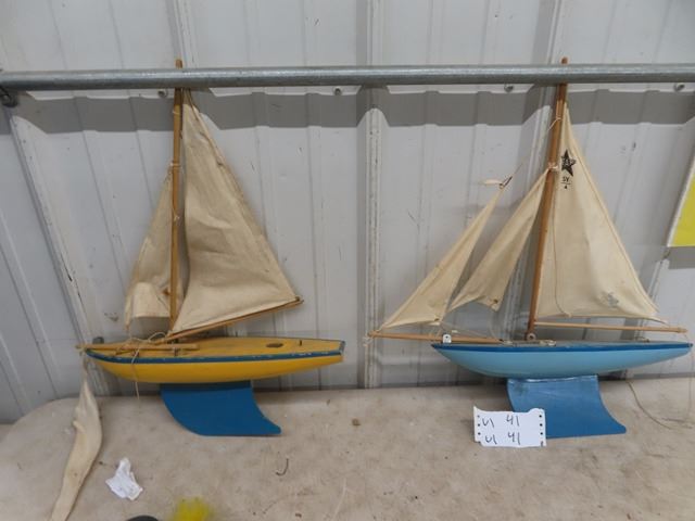 2 Wooden Sail Boats, "Star Yacht" Made in England 20" x 22"