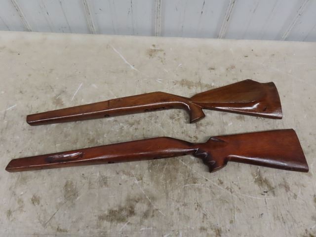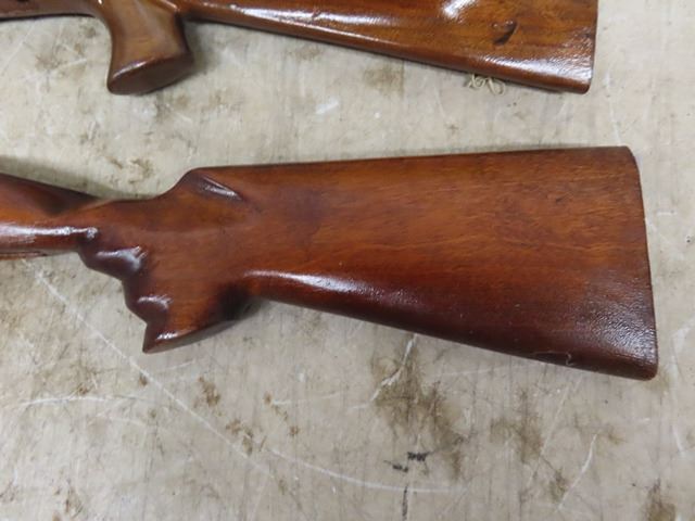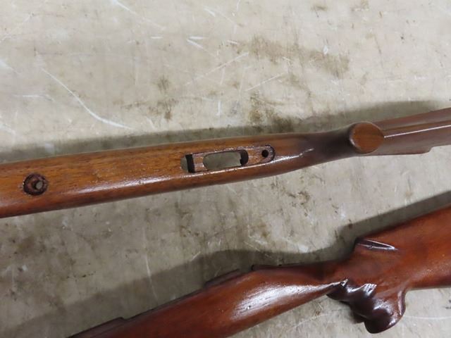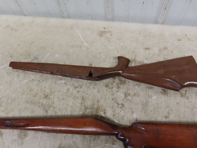 2 Wooden Stocks ; 1 Monte Carlo & with with Grooved in Pistol Grip - Both Believed off 22 Cal with Magazine