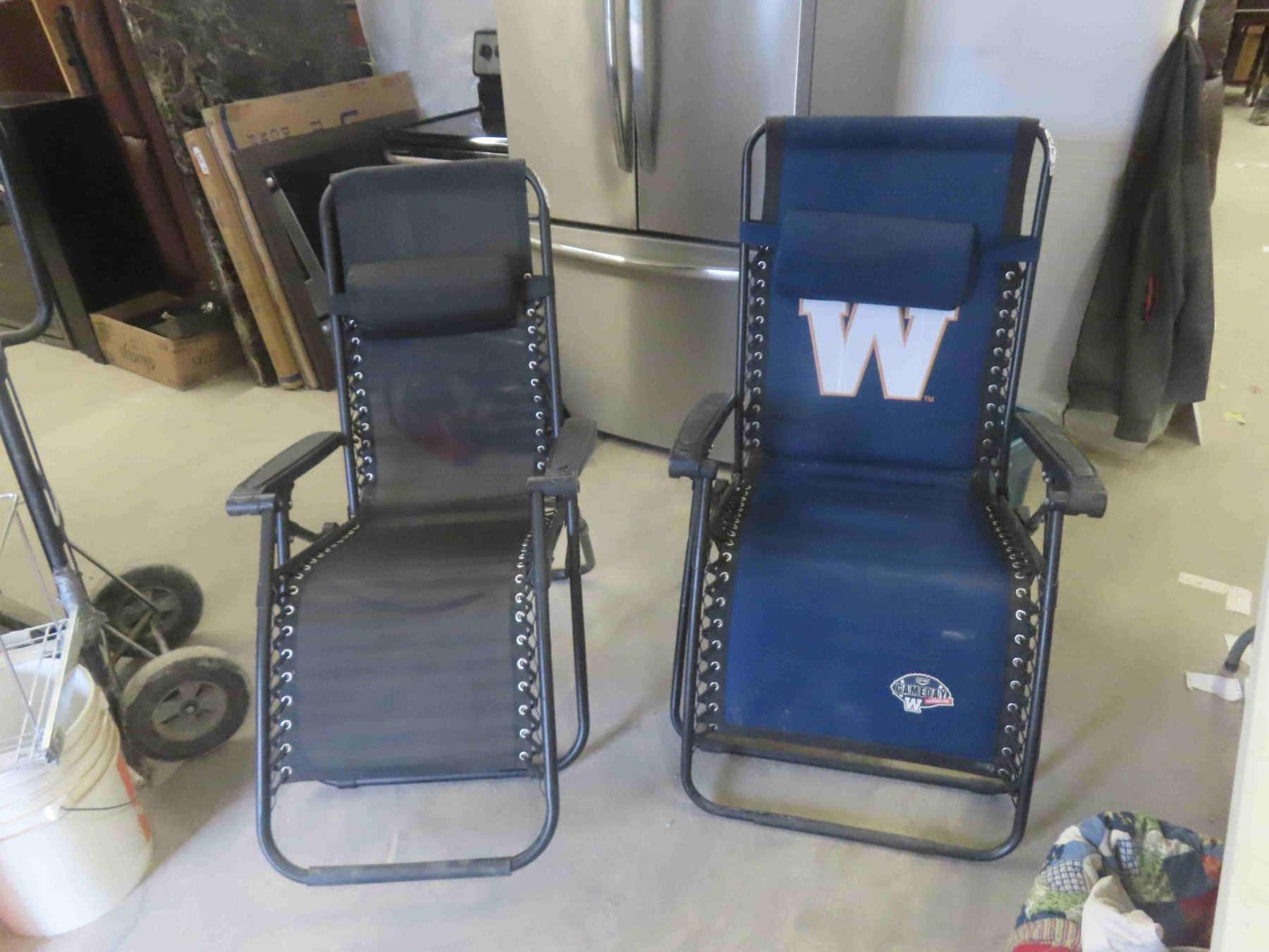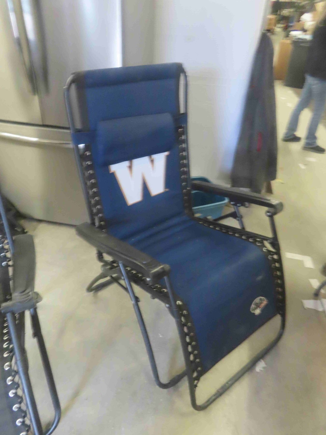 2 Zero Gravity Folding Lawn Chairs/Loungers - 1 is Winnipeg Blue Bombers Pattern