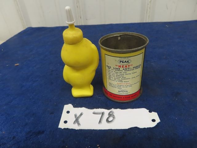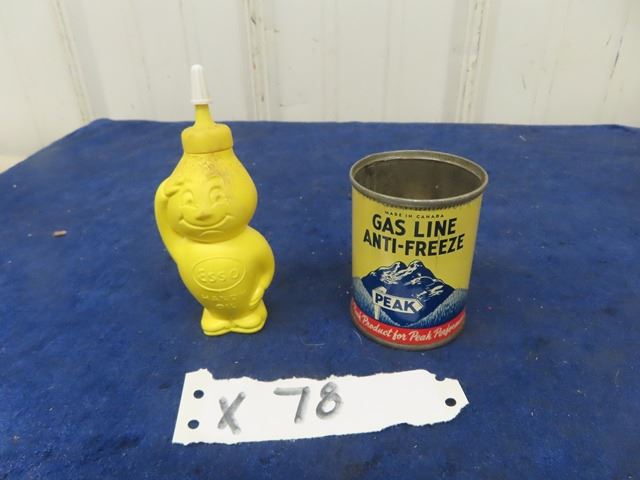 2 items; 1) Esso Handy Oil Squirt Bottle , 1) Peak Gas Line Anit Freeze Tin 4 oz
