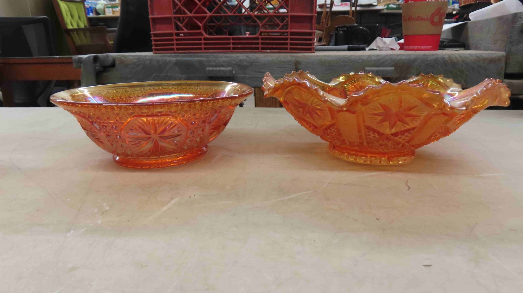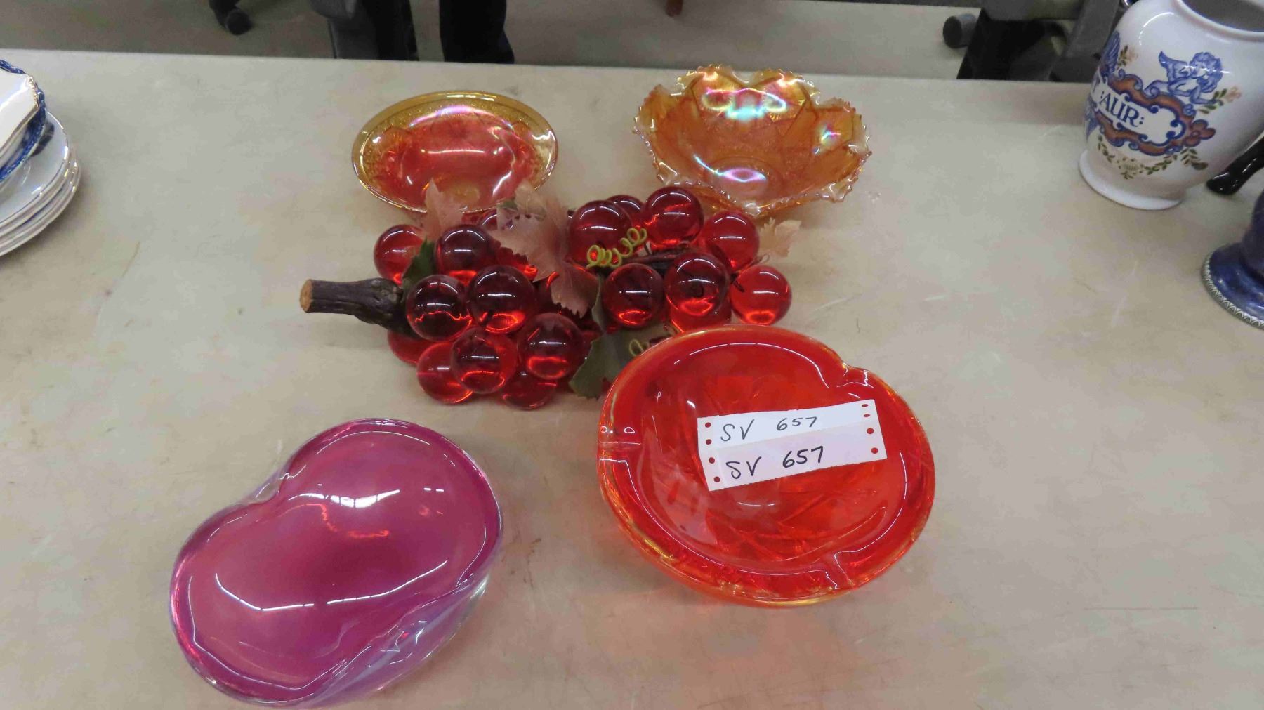 2 pcs Carnival Glass, Blown Glass,  Vintage Grape Centerpiece