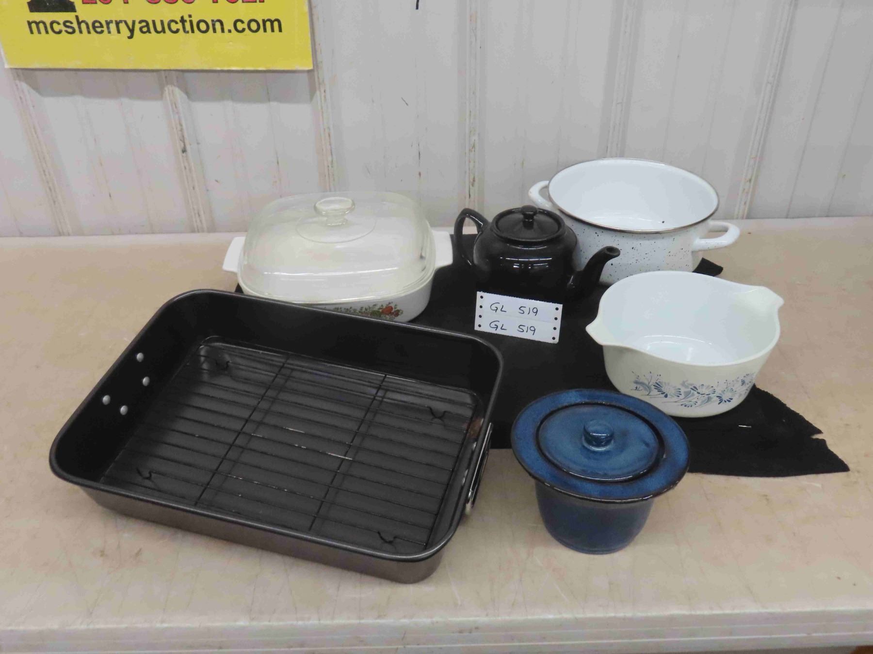 2 pcs Corning Ware, Enamel Pot, Roasting Pan, plus more