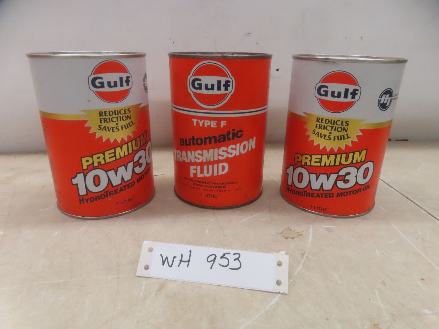 2 Unopened Gulf Super 10W30 Oil Cans & 1 Can Transmission Fluid