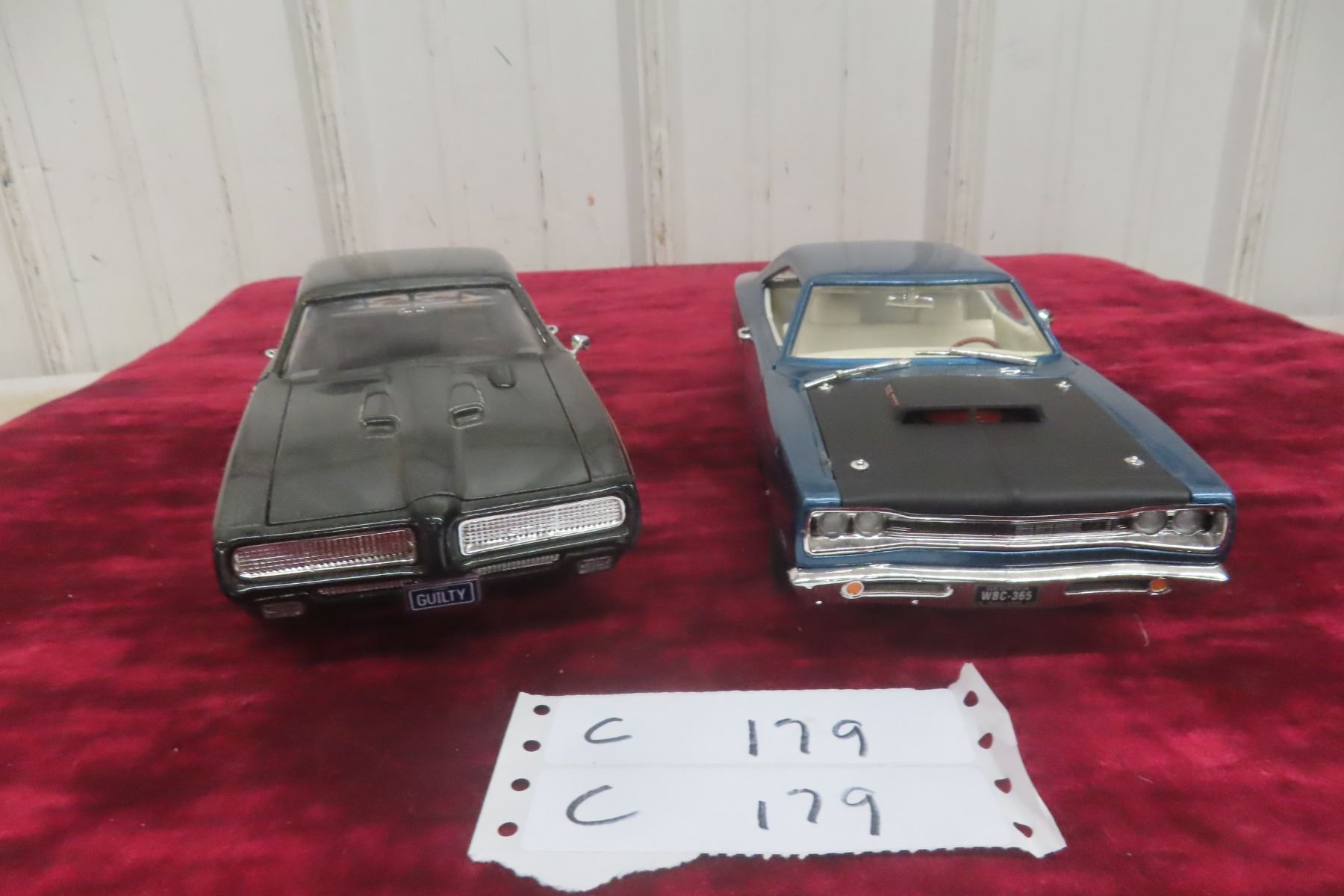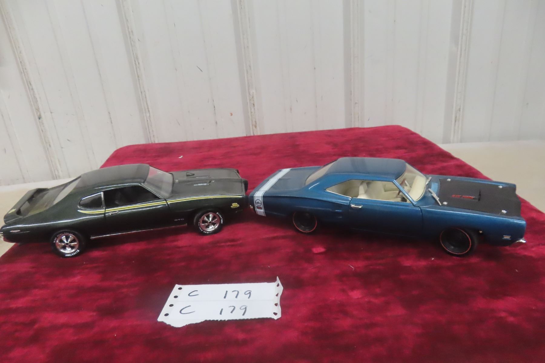 2 x 1/18 Scale Die Cast Cars: 1969 Dodge Super Bee and 1969 Pontiac GTO Judge