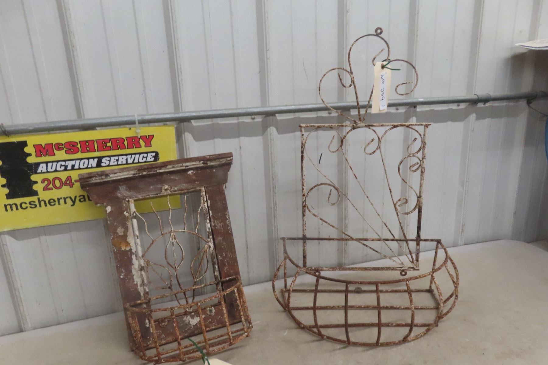 2 x Antique Hanging Iron Wall Planter (Largest 18" × 28")