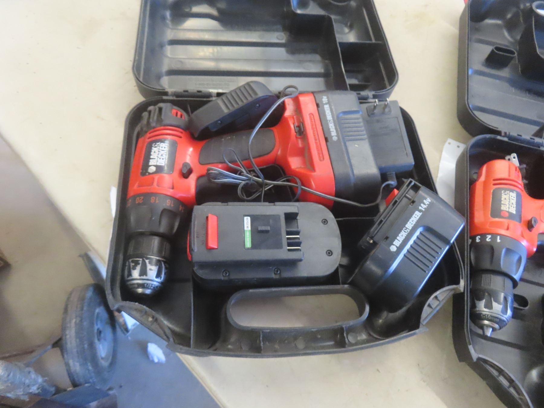 2 x Black and Decker 14.4 Drills with Battery, Charger + Case